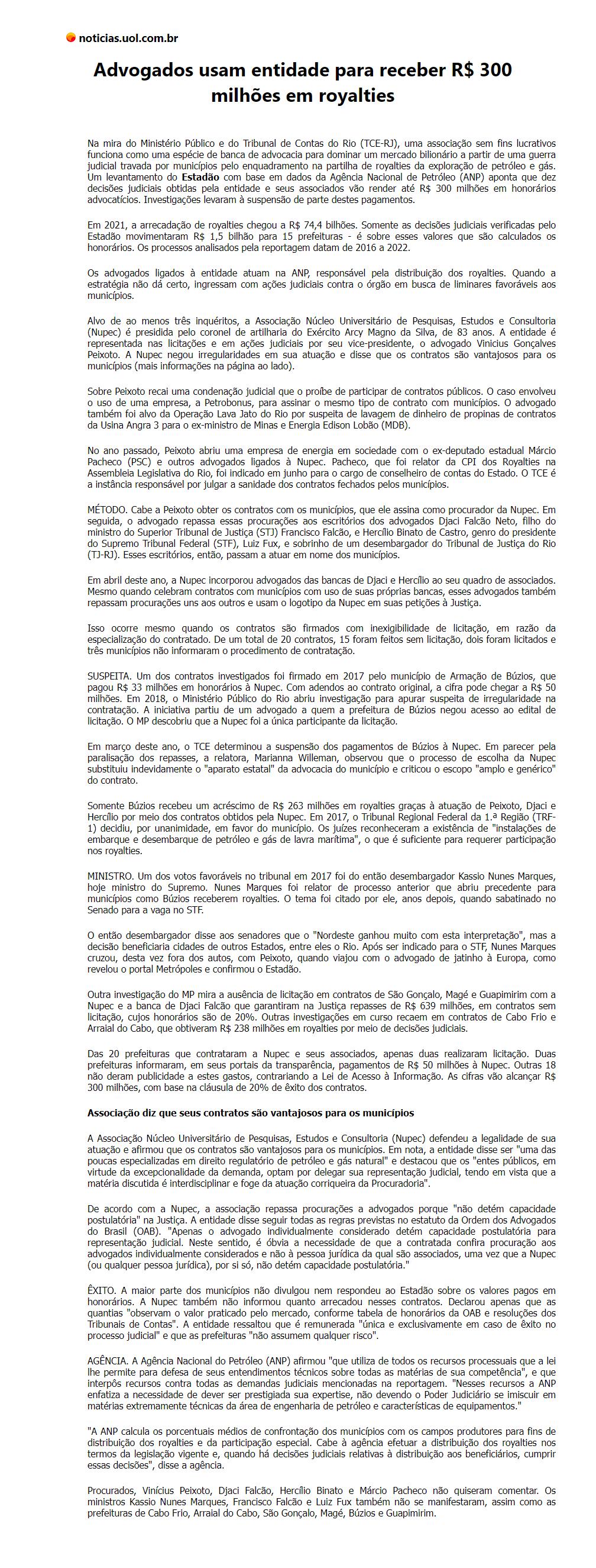 Advogados usam entidade para receber R$ 300 milhões em royalties
