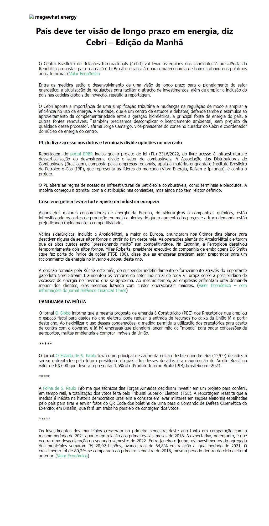 País deve ter visão de longo prazo em energia, diz Cebri Edição da Manhã