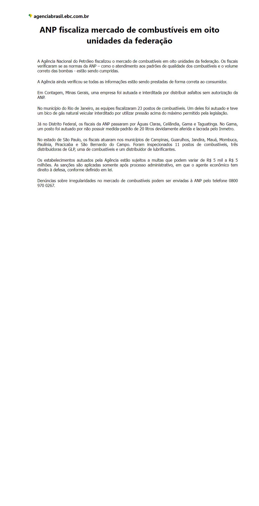 ANP fiscaliza mercado de combustíveis em oito unidades da federação