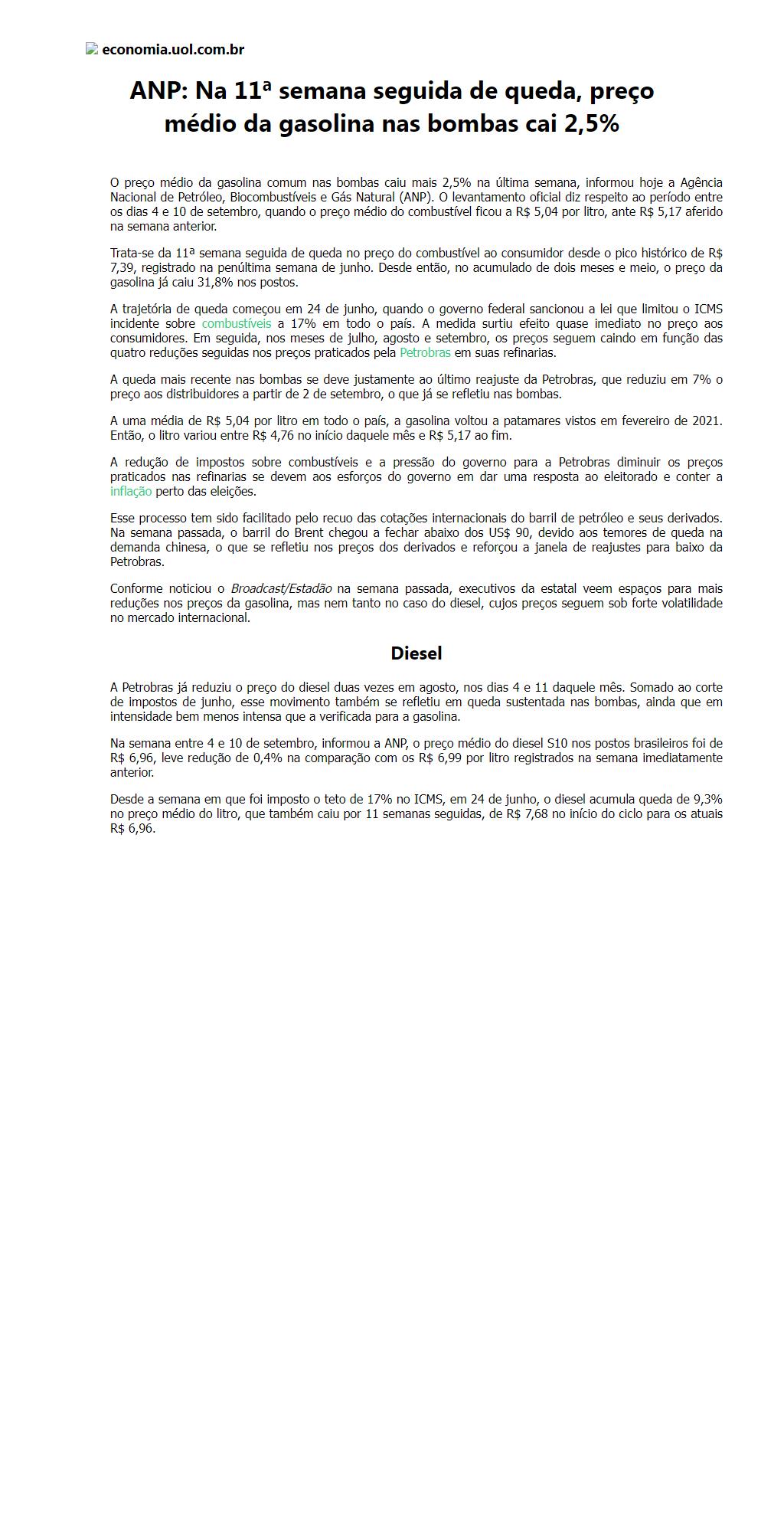ANP: Na 11ª semana seguida de queda, preço médio da gasolina nas bombas cai 2,5%