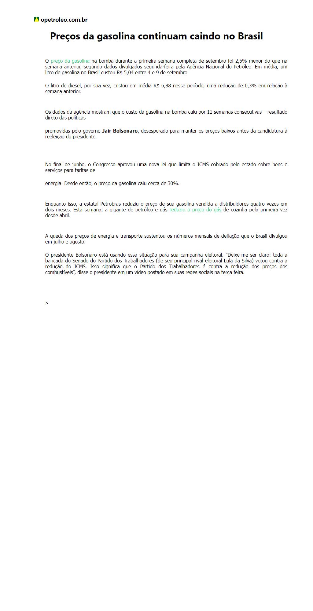 Preços da gasolina continuam caindo no Brasil