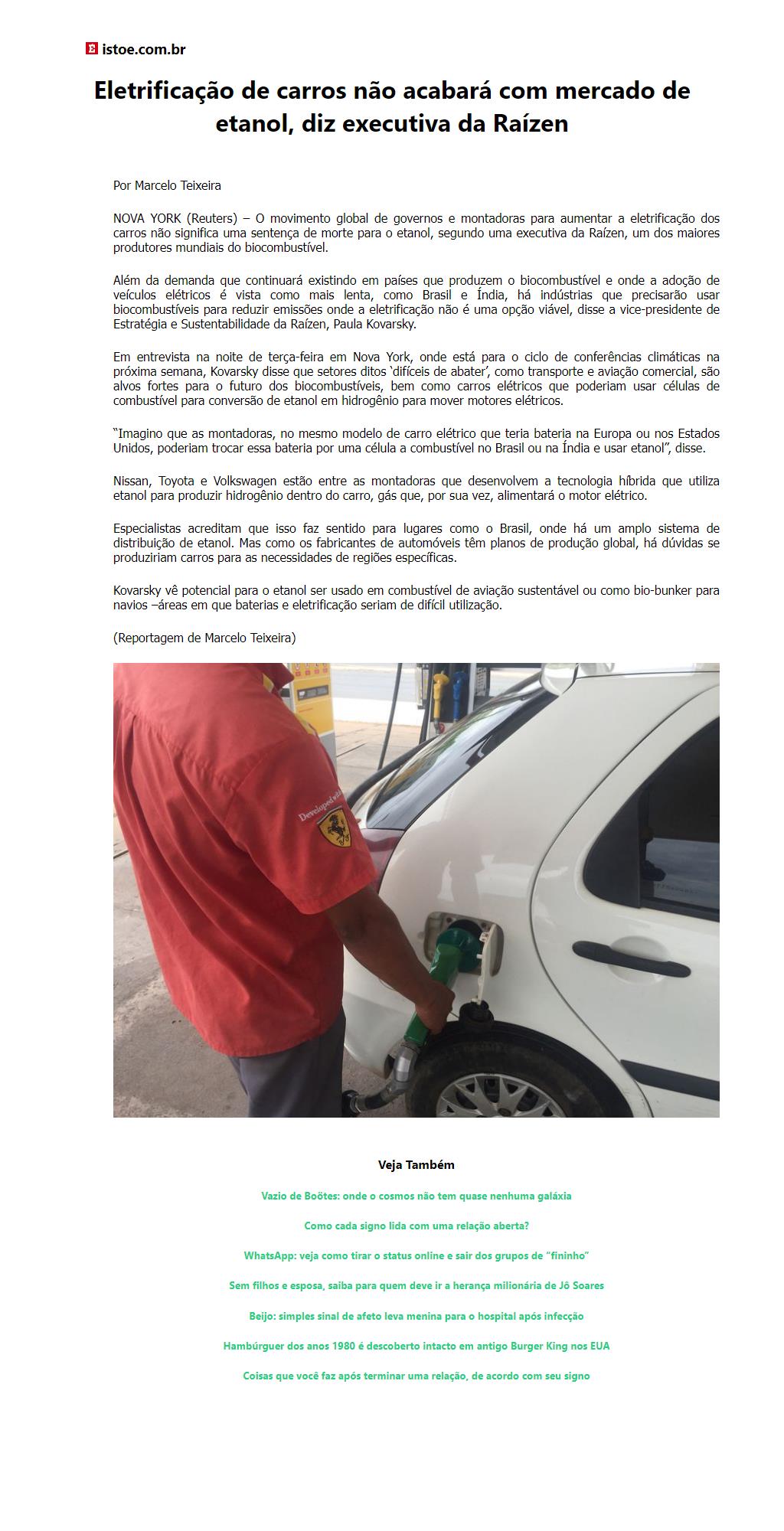 Eletrificação de carros não acabará com mercado de etanol, diz executiva da Raízen
