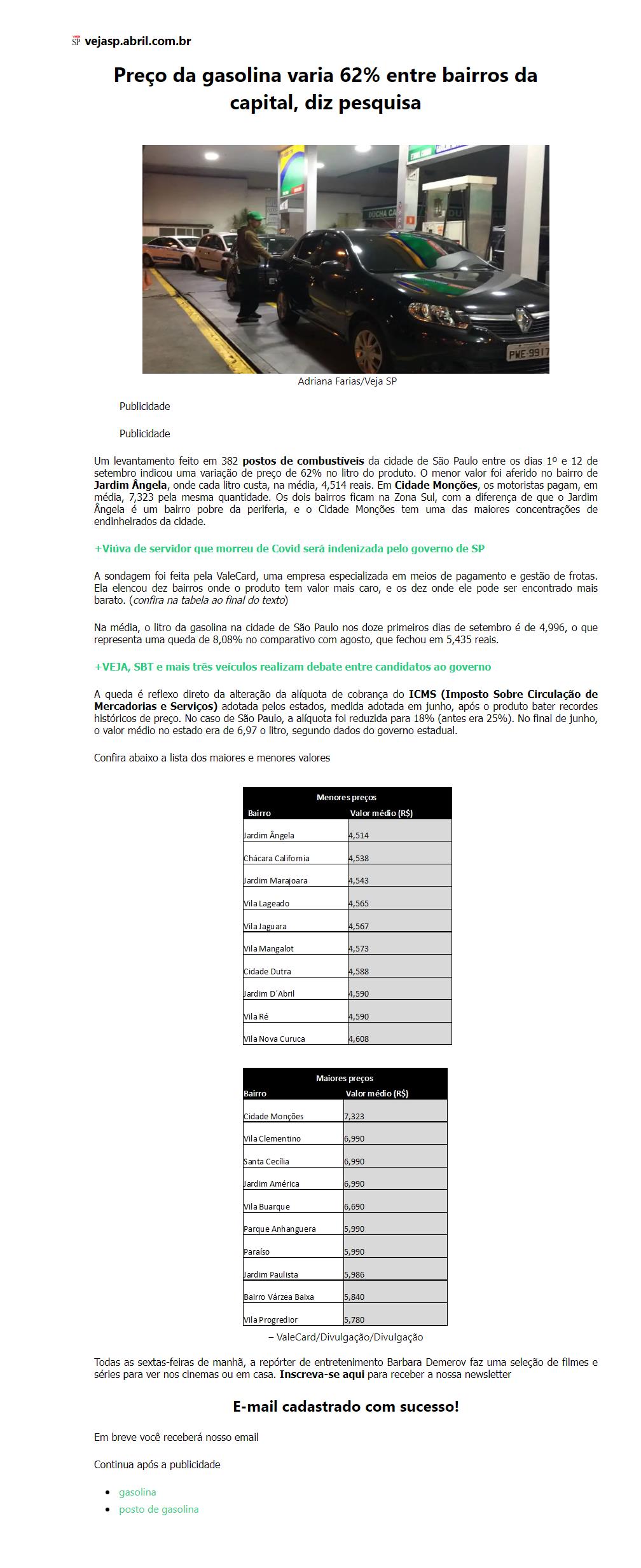 Preço da gasolina varia 62% entre bairros da capital, diz pesquisa
