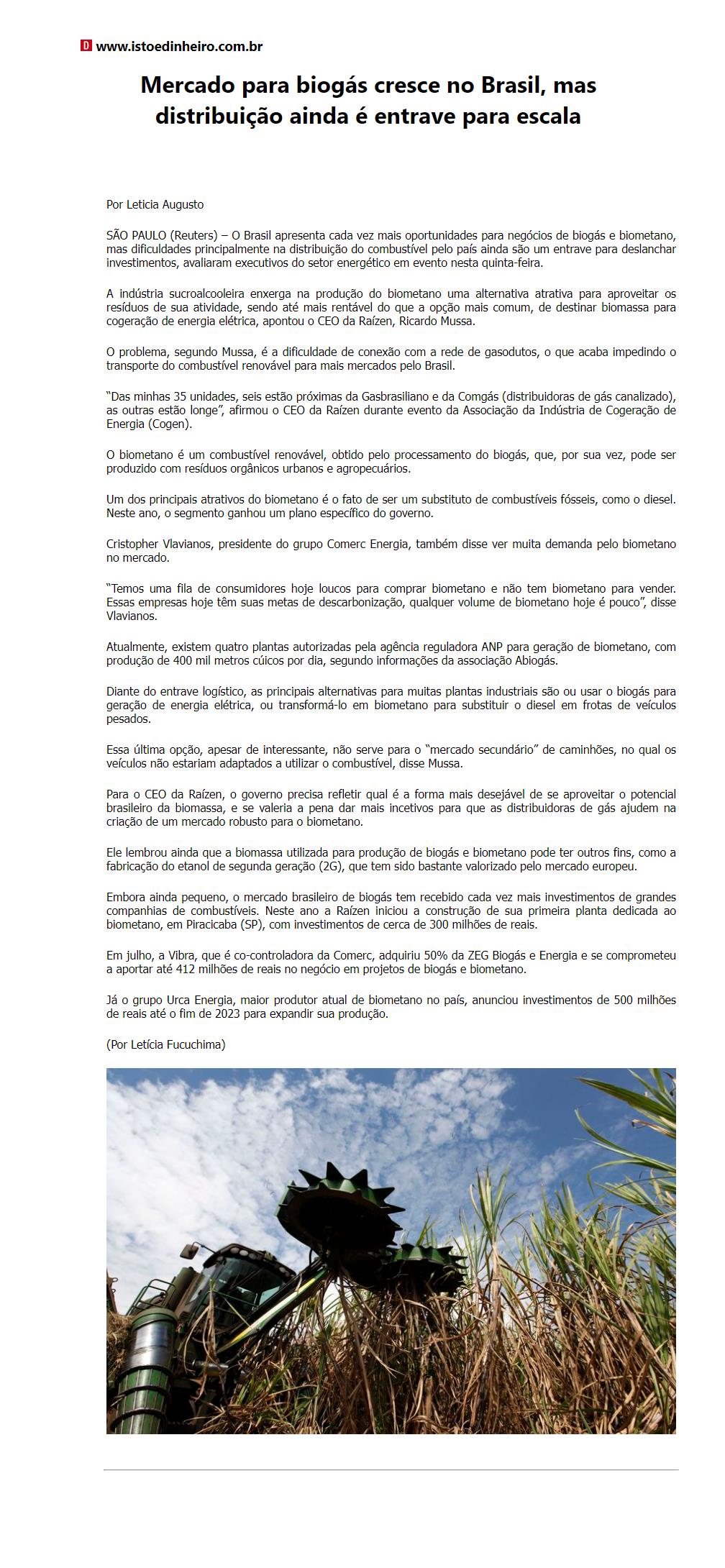 Mercado para biogás cresce no Brasil, mas distribuição ainda é entrave para escala