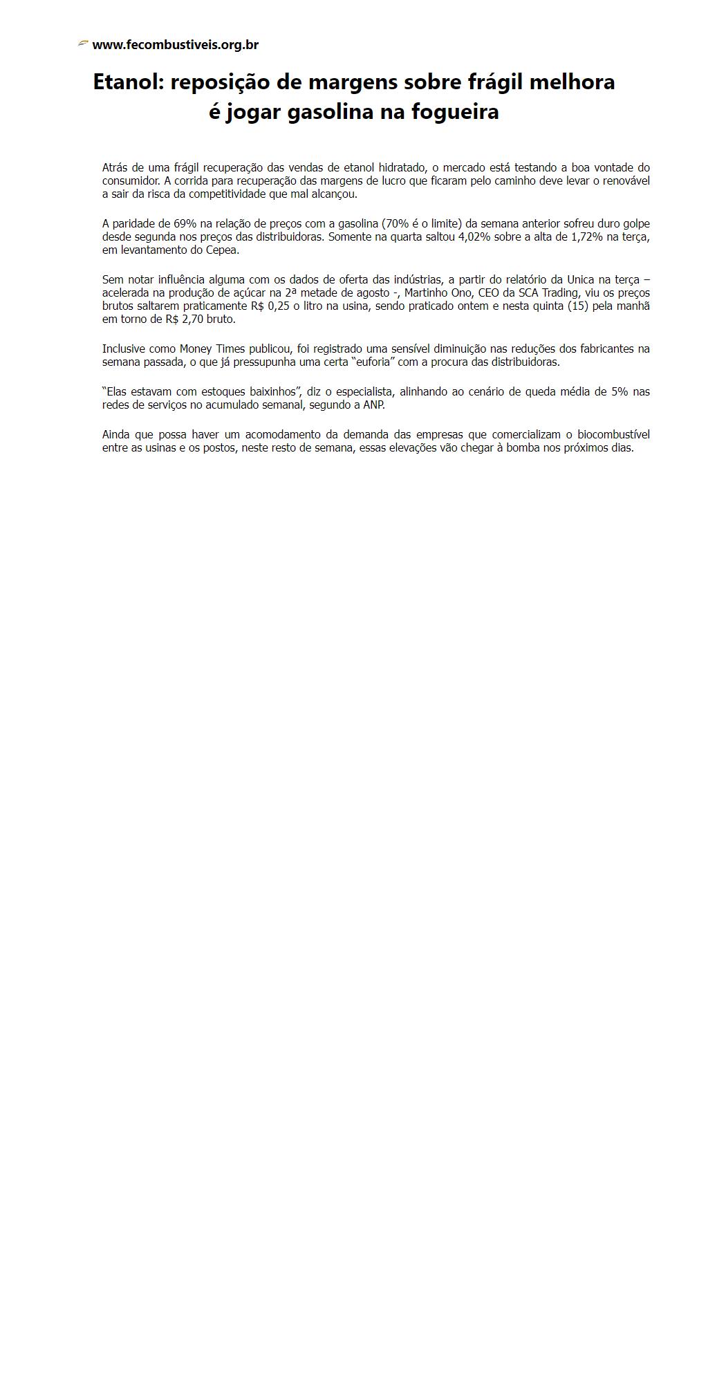 Etanol: reposição de margens sobre frágil melhora é jogar gasolina na fogueira