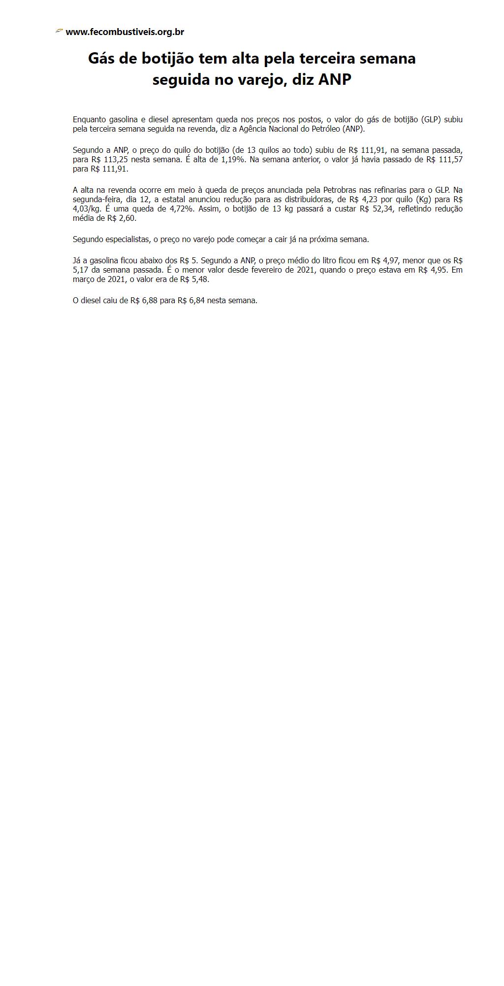 Gás de botijão tem alta pela terceira semana seguida no varejo, diz ANP