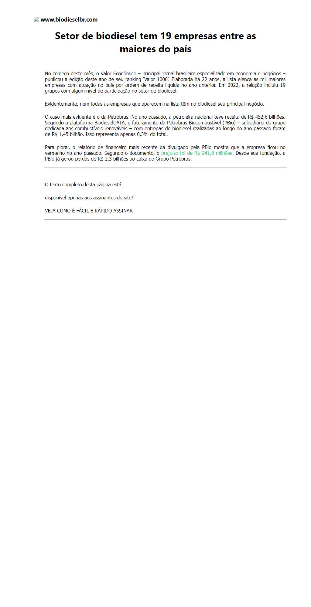 Setor de biodiesel tem 19 empresas entre as maiores do país
