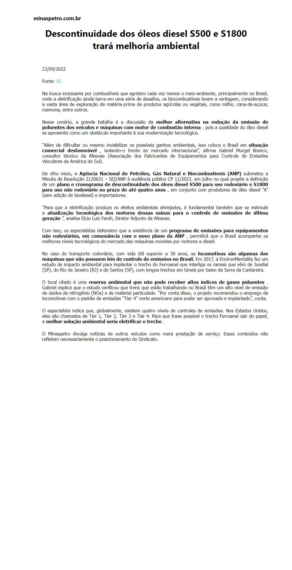 Descontinuidade dos óleos diesel S500 e S1800 trará melhoria ambiental