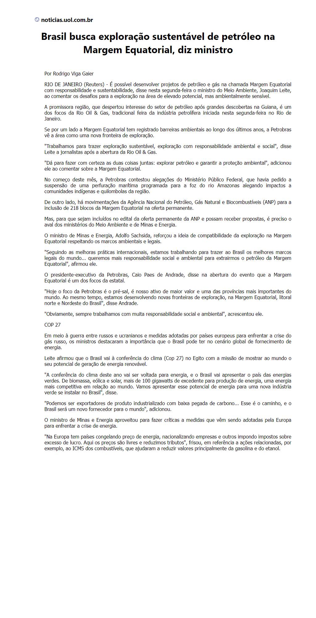 Brasil busca exploração sustentável de petróleo na Margem Equatorial, diz ministro