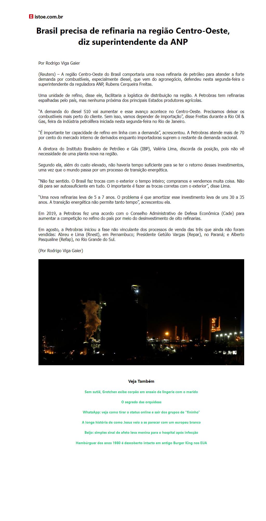 Brasil precisa de refinaria na região Centro-Oeste, diz superintendente da ANP