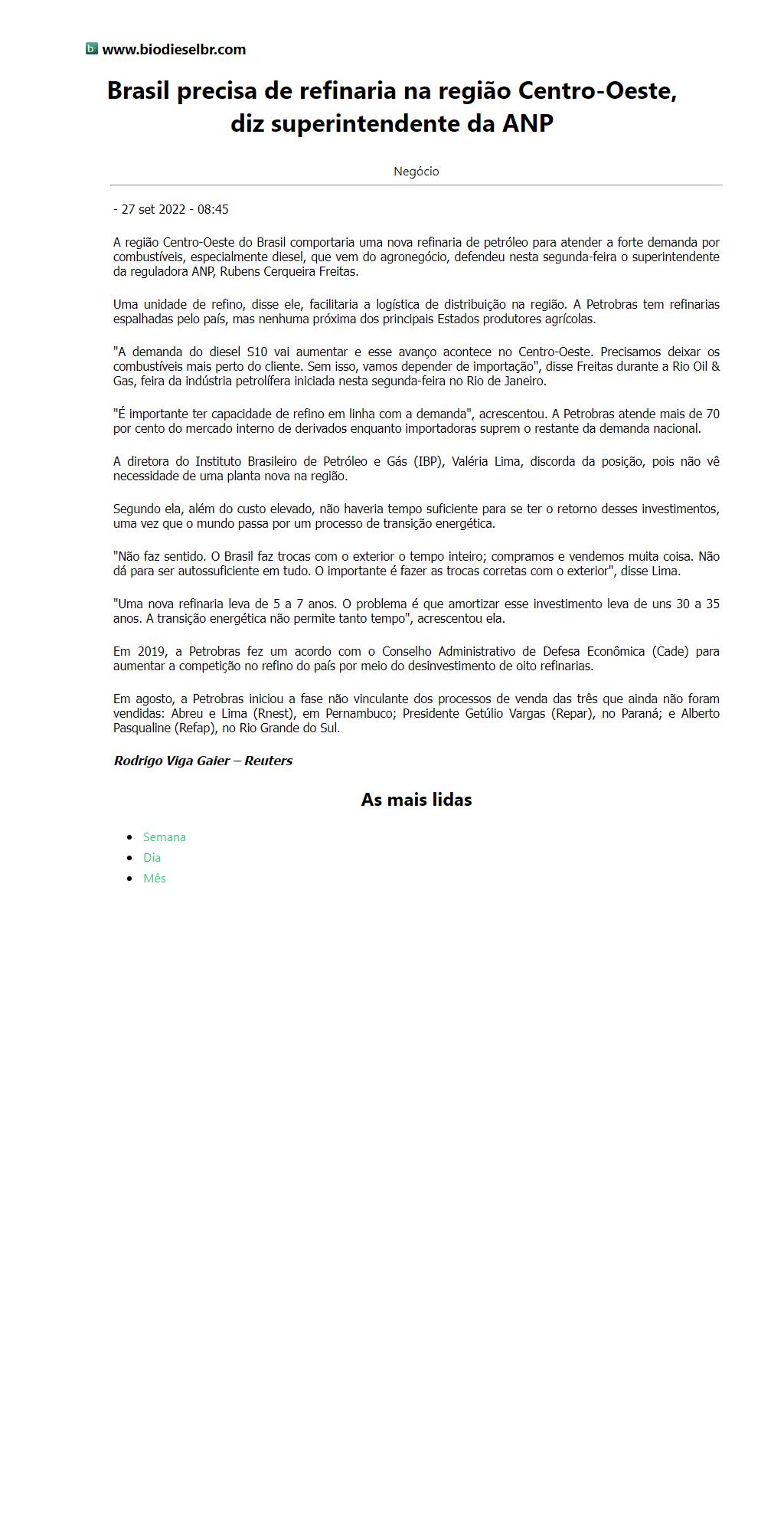 Brasil precisa de refinaria na região Centro-Oeste, diz superintendente da ANP