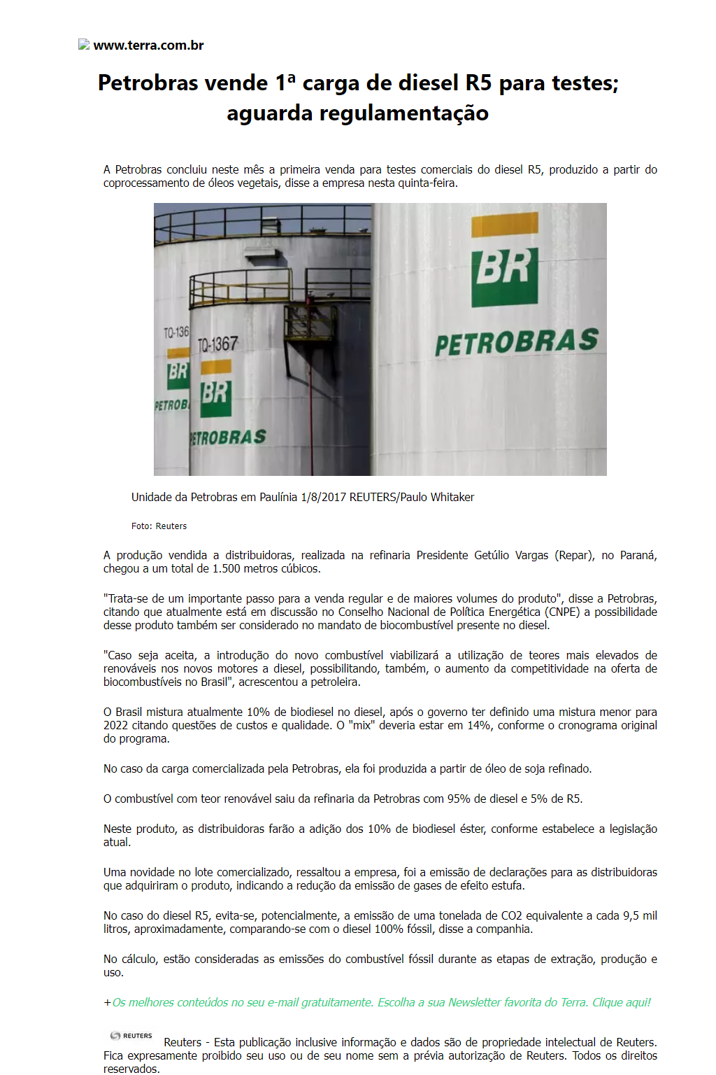 Petrobras vende 1ª carga de diesel R5 para testes; aguarda regulamentação
