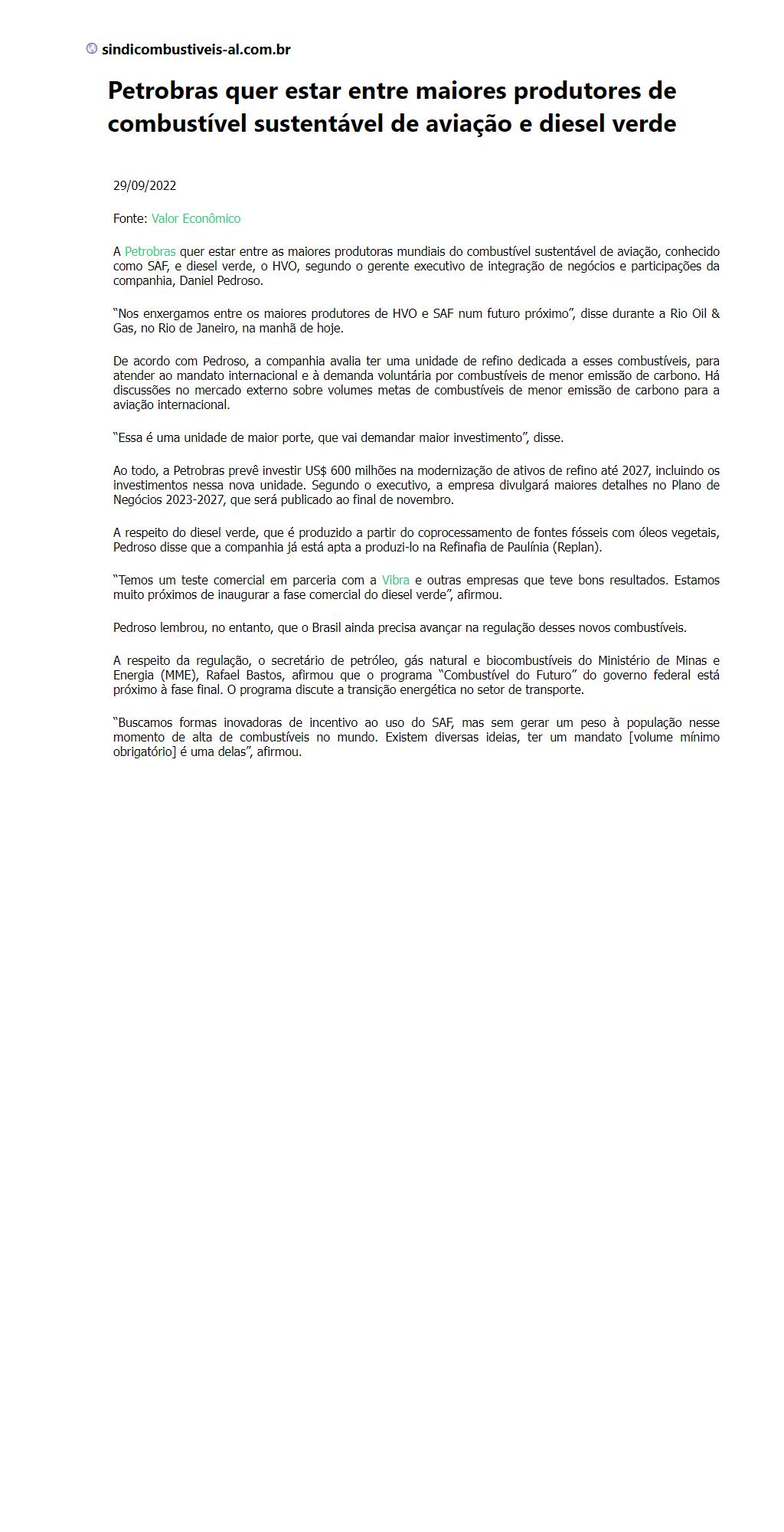 Petrobras quer estar entre maiores produtores de combustível sustentável de aviação e diesel verde