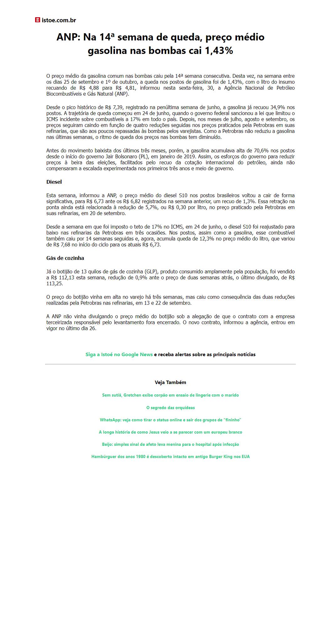 ANP: Na 14ª semana de queda, preço médio gasolina nas bombas cai 1,43%