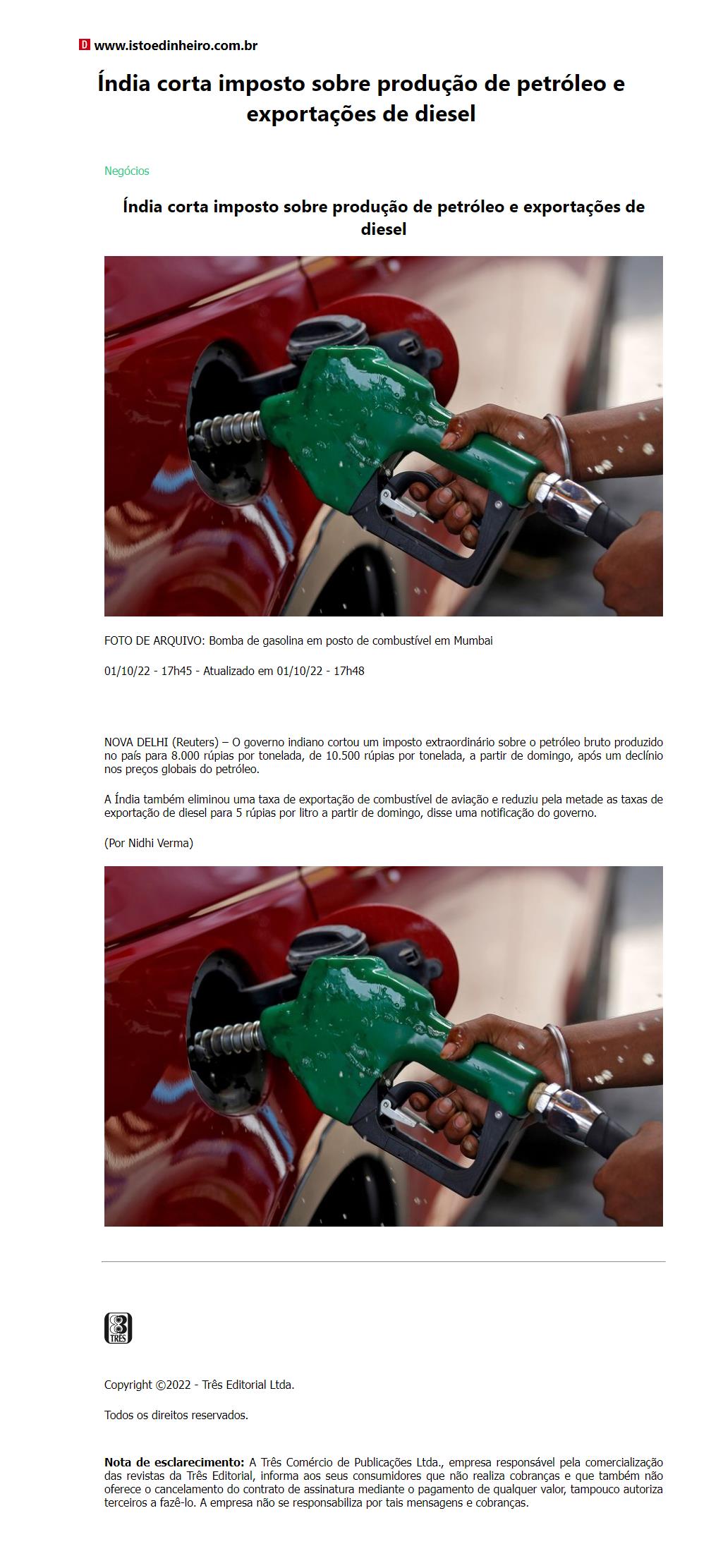 Índia corta imposto sobre produção de petróleo e exportações de diesel
