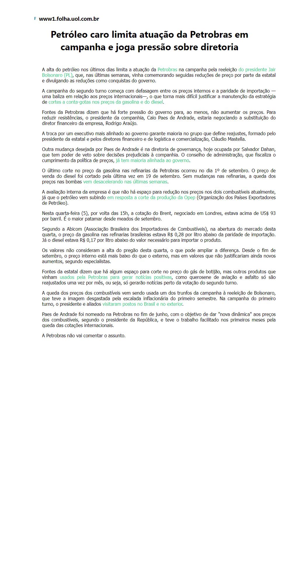 Petróleo caro limita atuação da Petrobras em campanha e joga pressão sobre diretoria