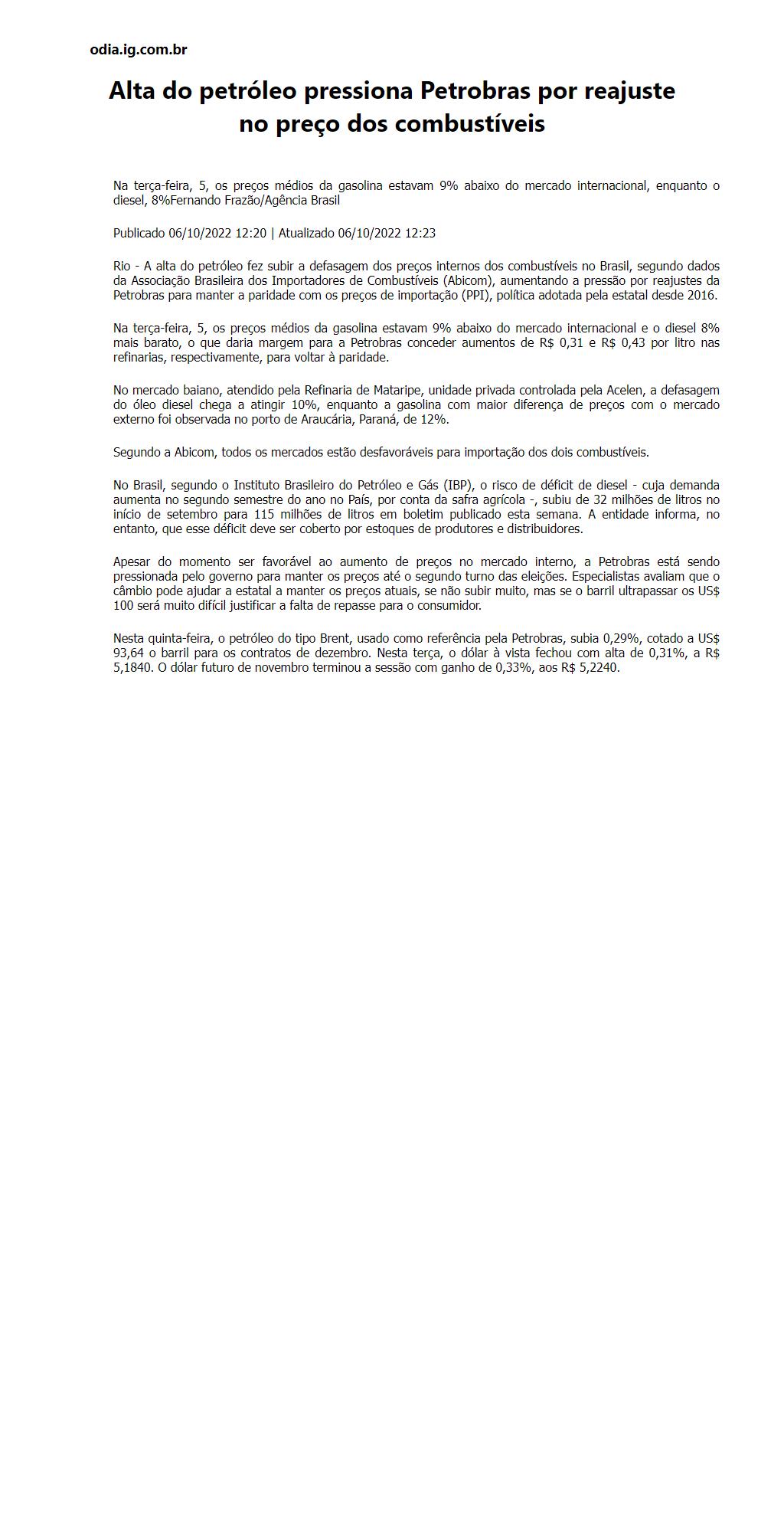 Alta do petróleo pressiona Petrobras por reajuste no preço dos combustíveis