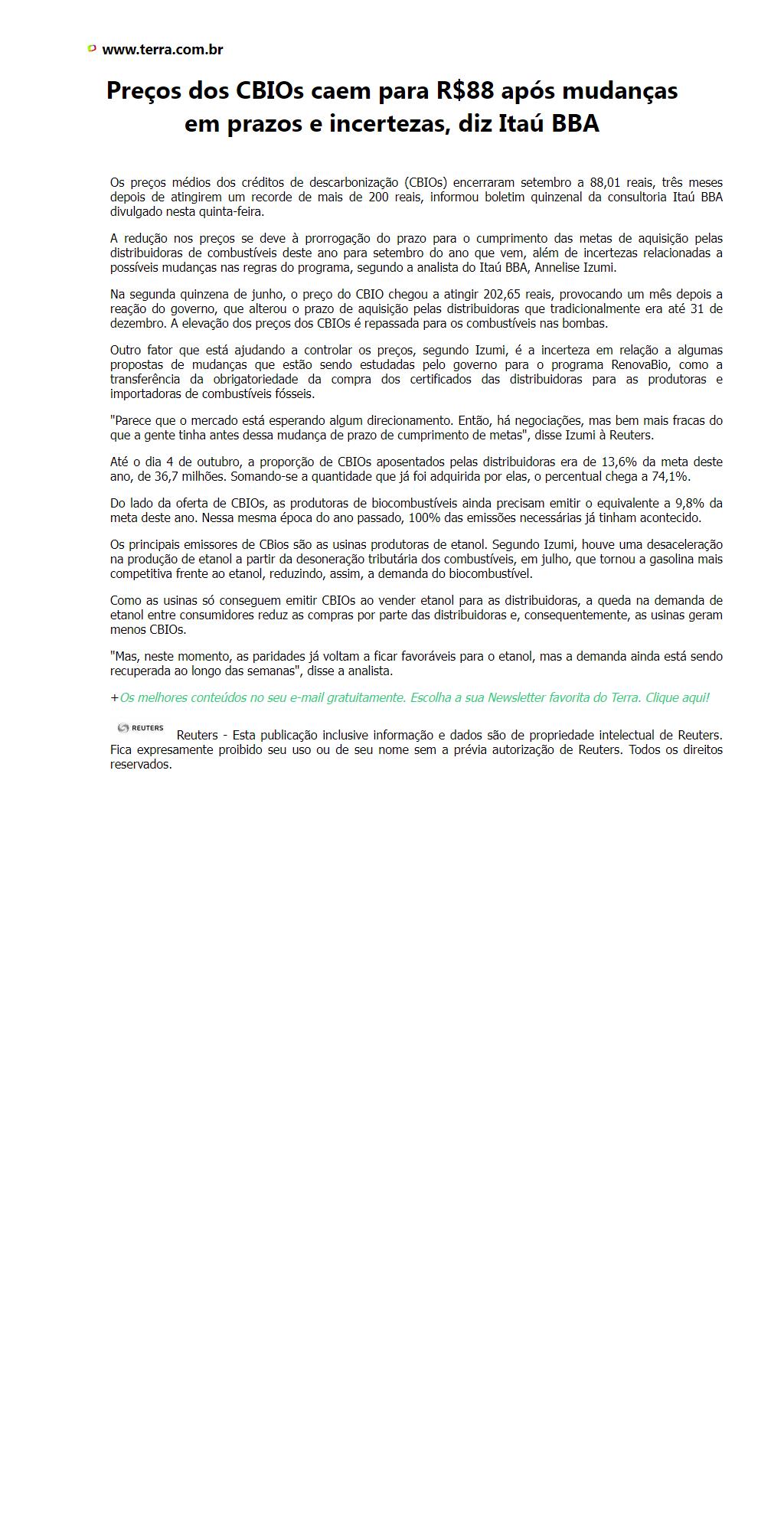 Preços dos CBIOs caem para R$88 após mudanças em prazos e incertezas, diz Itaú BBA