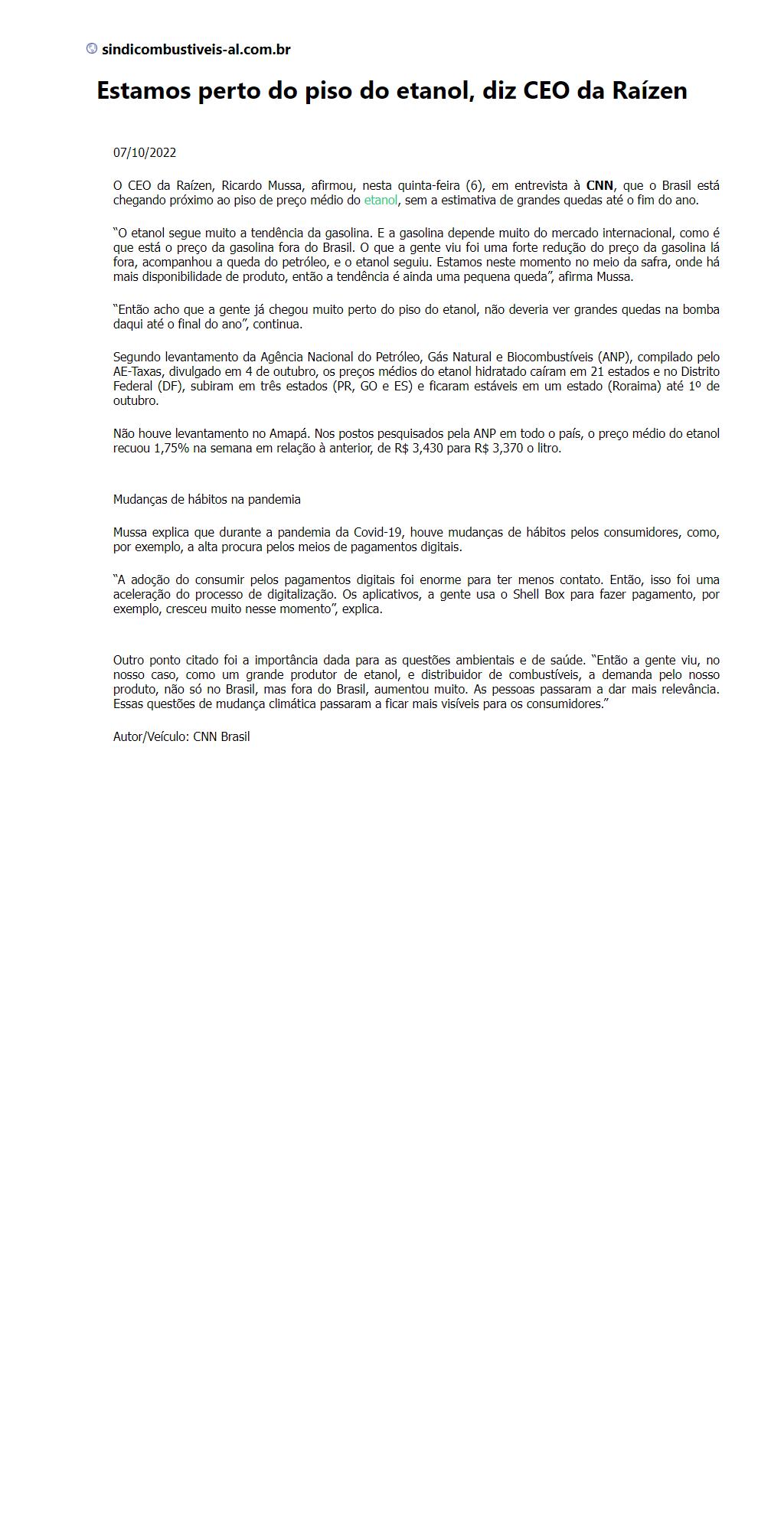 Estamos perto do piso do etanol, diz CEO da Raízen