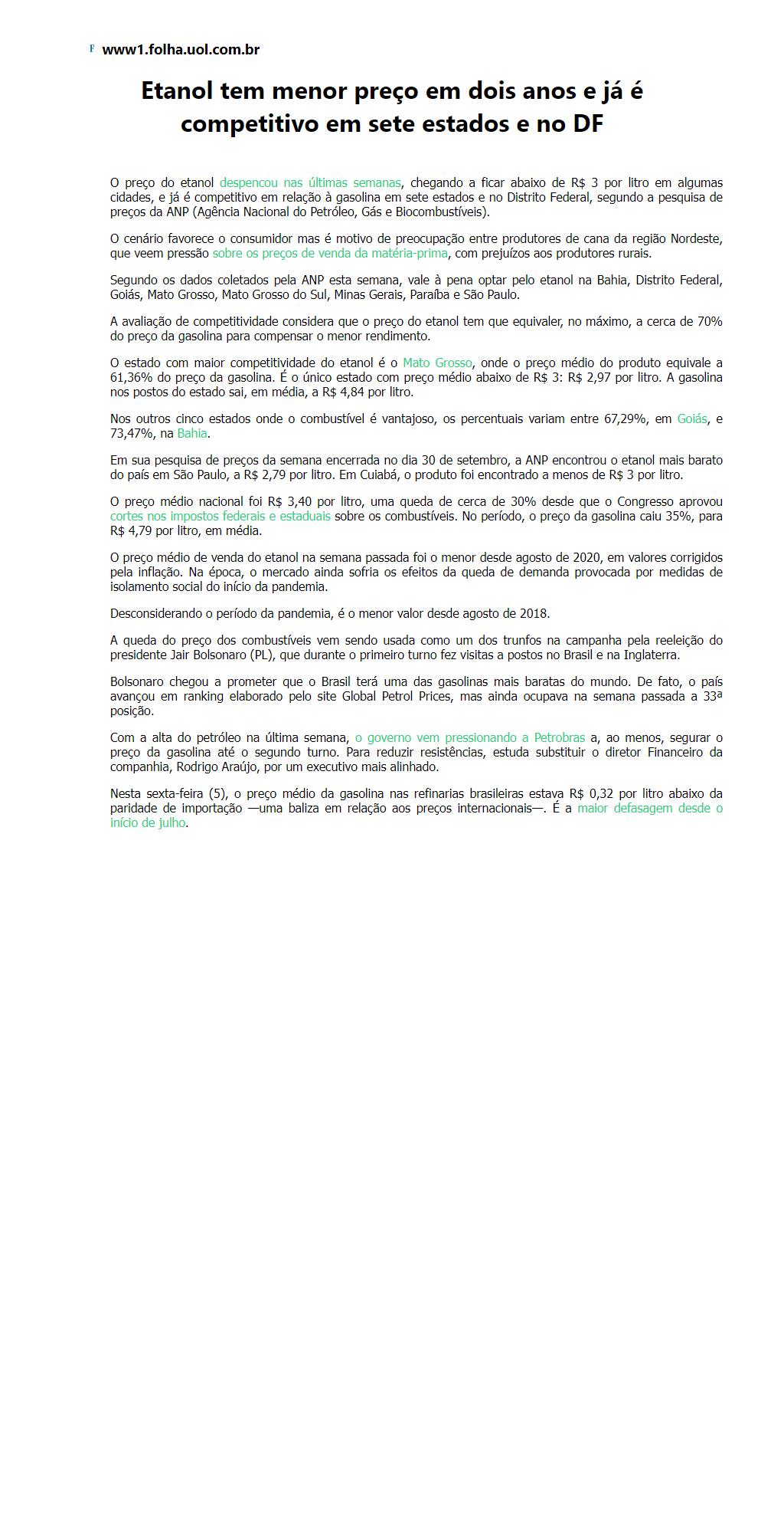 Etanol tem menor preço em dois anos e já é competitivo em sete estados e no DF