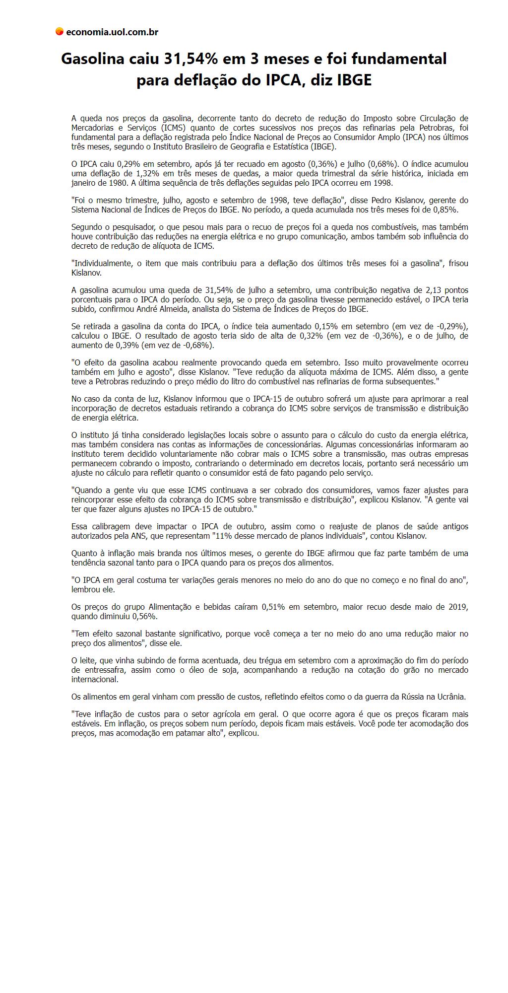 Gasolina caiu 31,54% em 3 meses e foi fundamental para deflação do IPCA, diz IBGE