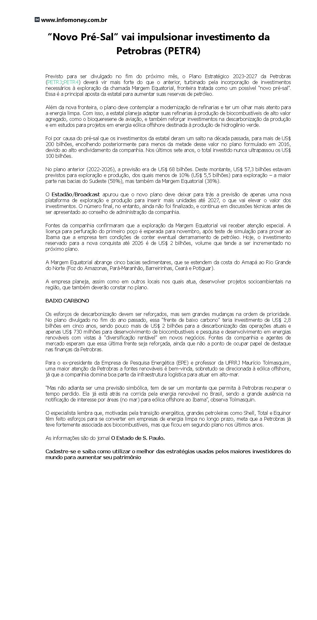 Novo Pré-Sal vai impulsionar investimento da Petrobras (PETR4)