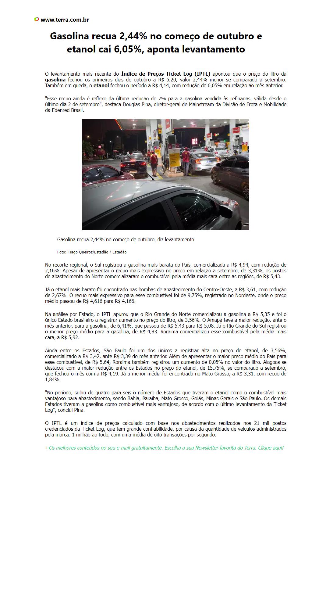 Gasolina recua 2,44% no começo de outubro e etanol cai 6,05%, aponta levantamento