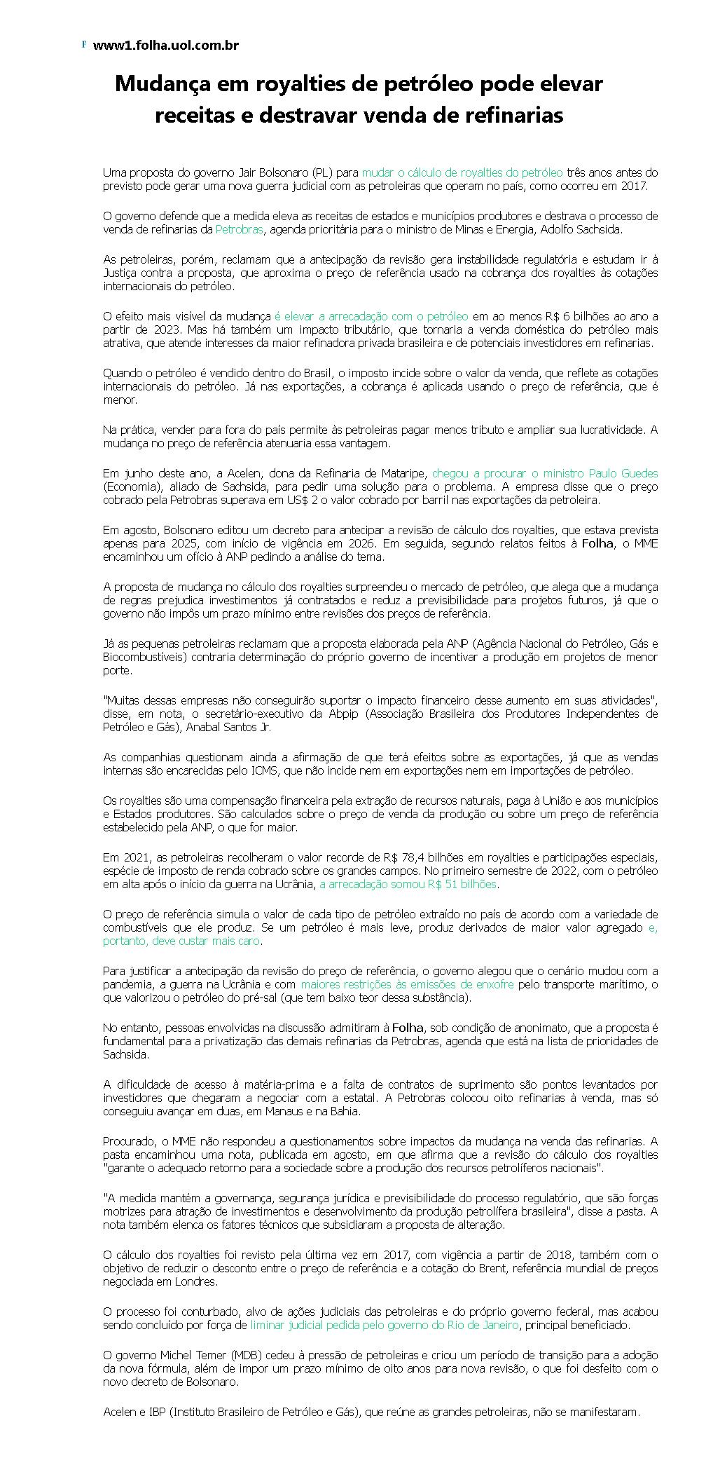 Mudança em royalties de petróleo pode elevar receitas e destravar venda de refinarias