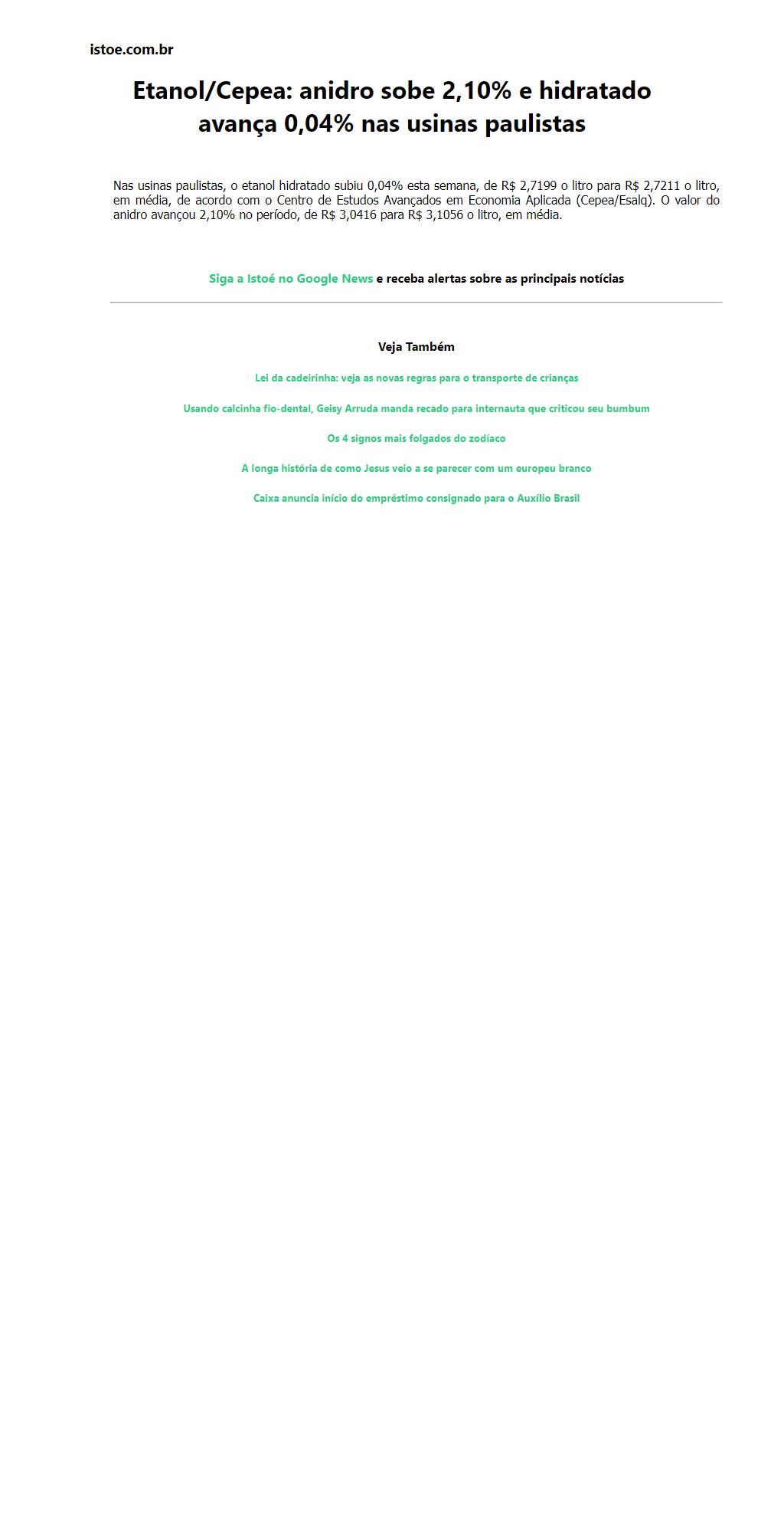 Etanol/Cepea: anidro sobe 2,10% e hidratado avança 0,04% nas usinas paulistas