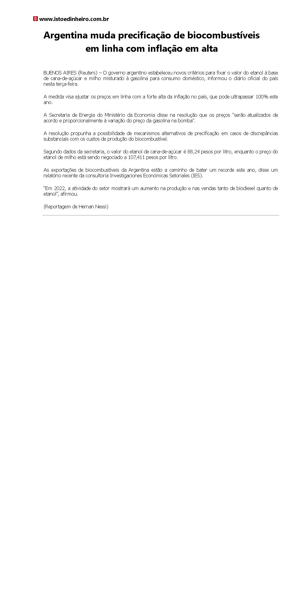 Argentina muda precificação de biocombustíveis em linha com inflação em alta