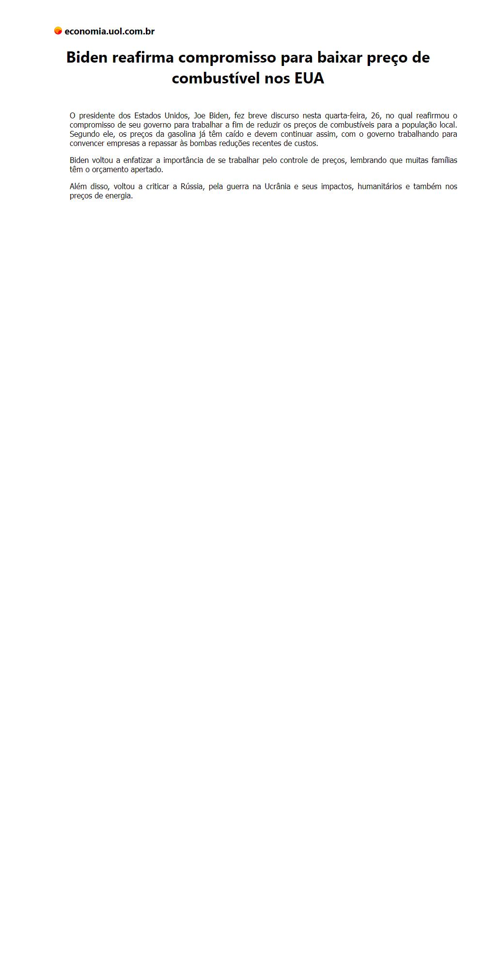 Biden reafirma compromisso para baixar preço de combustível nos EUA
