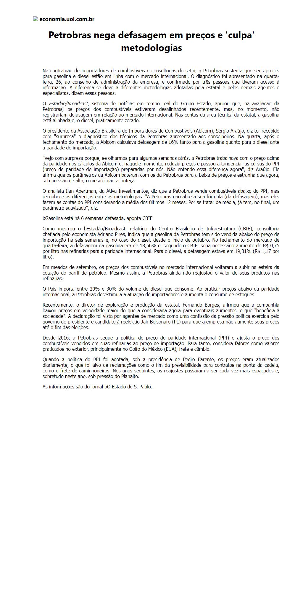 Petrobras nega defasagem em preços e 'culpa' metodologias