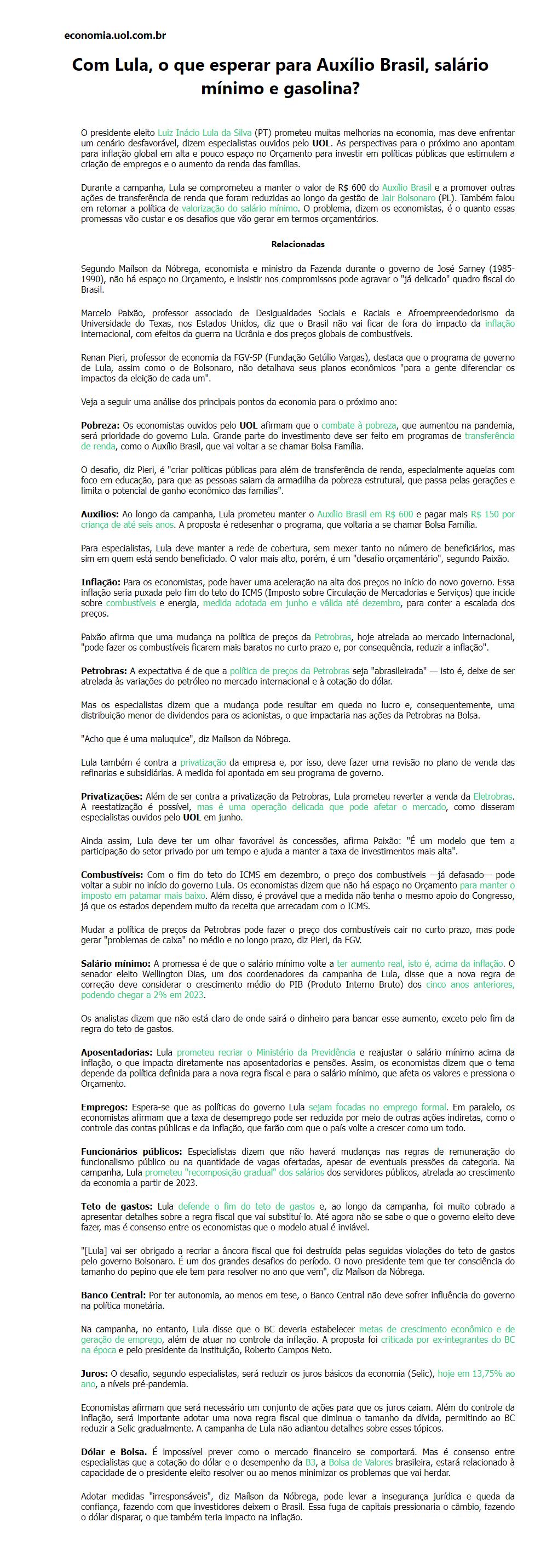 Com Lula, o que esperar para Auxílio Brasil, salário mínimo e gasolina?