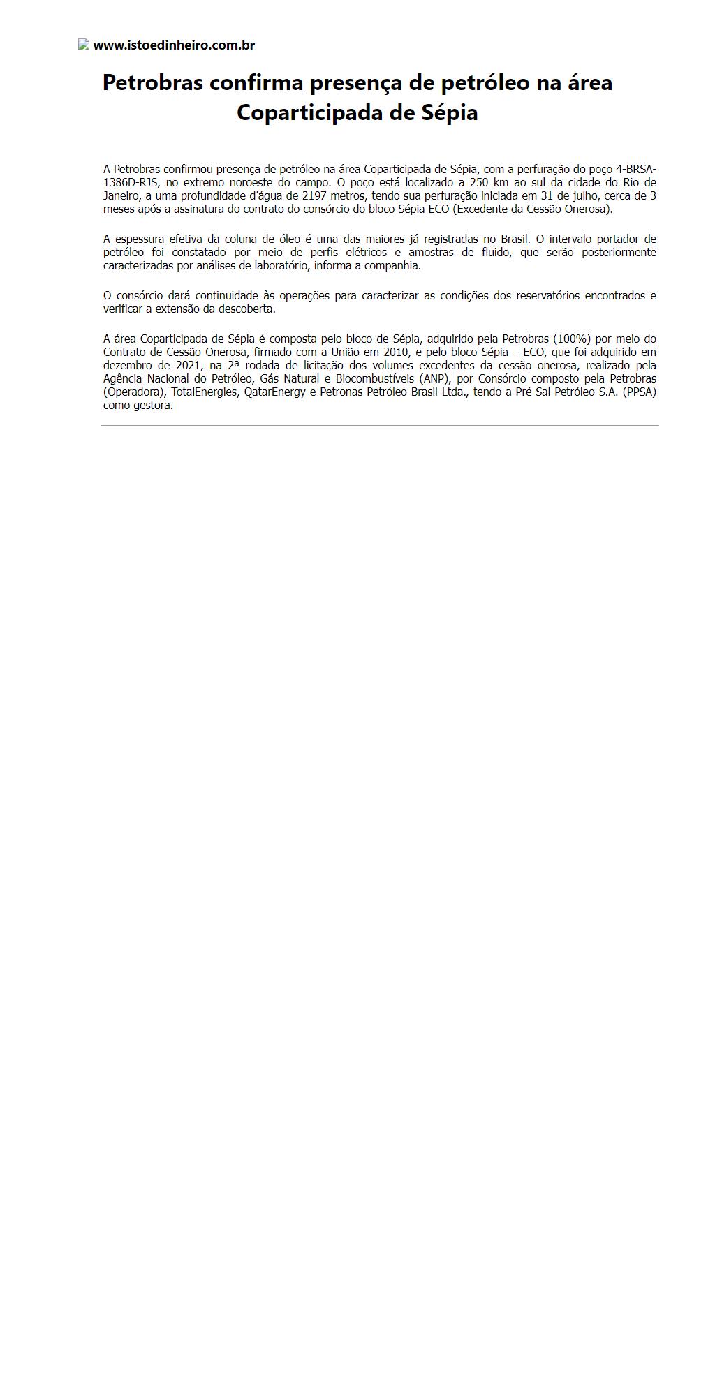 Petrobras confirma presença de petróleo na área Coparticipada de Sépia
