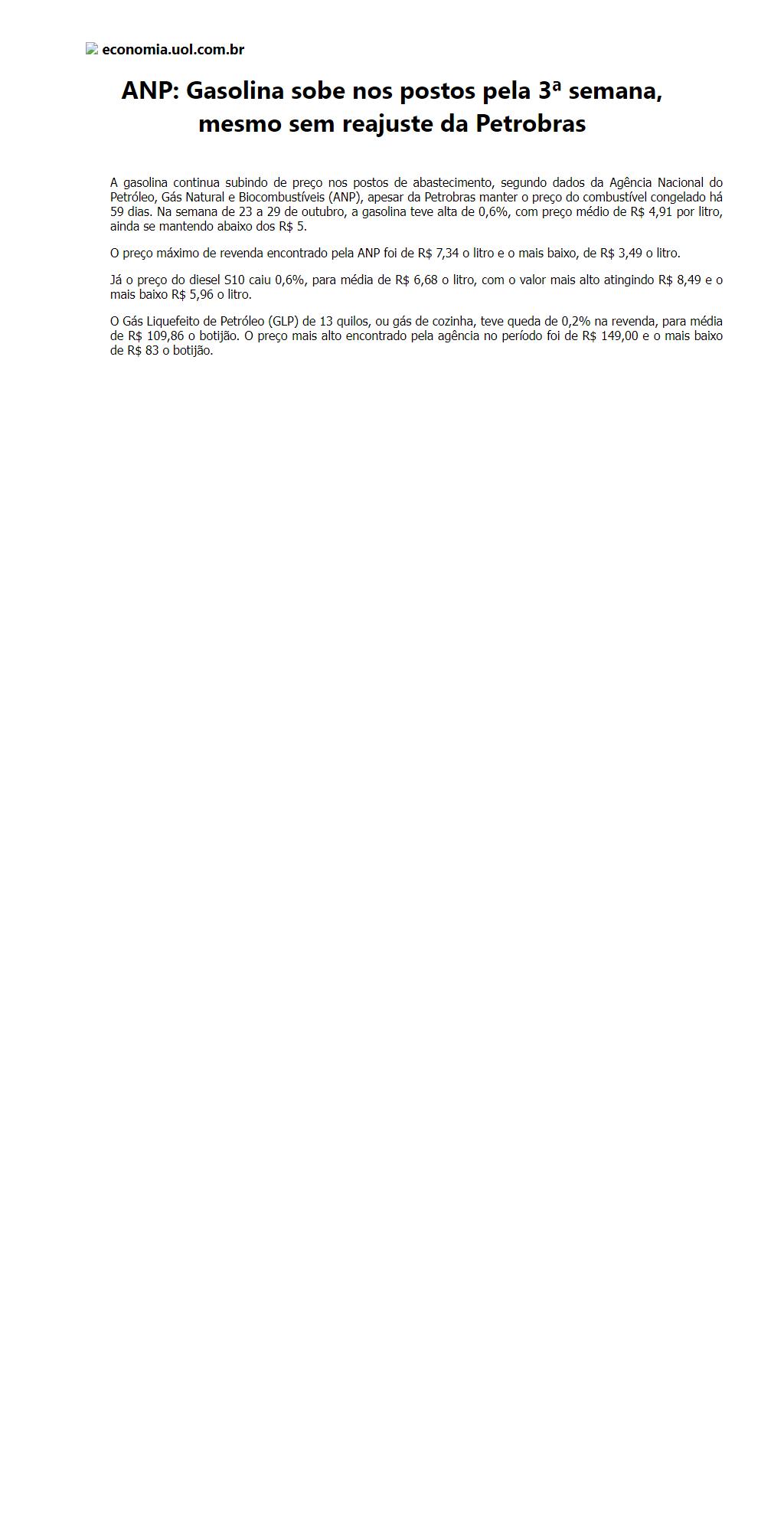 ANP: Gasolina sobe nos postos pela 3ª semana, mesmo sem reajuste da Petrobras