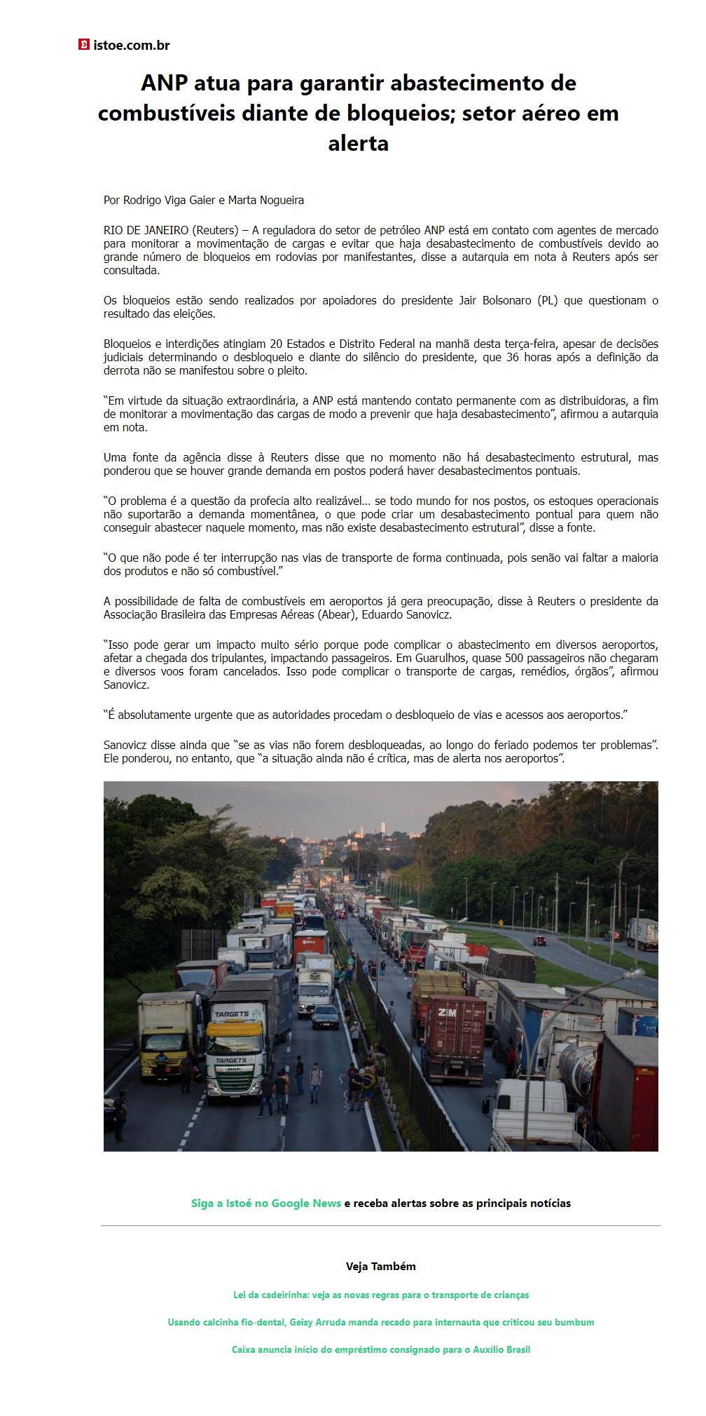 ANP atua para garantir abastecimento de combustíveis diante de bloqueios; setor aéreo em alerta