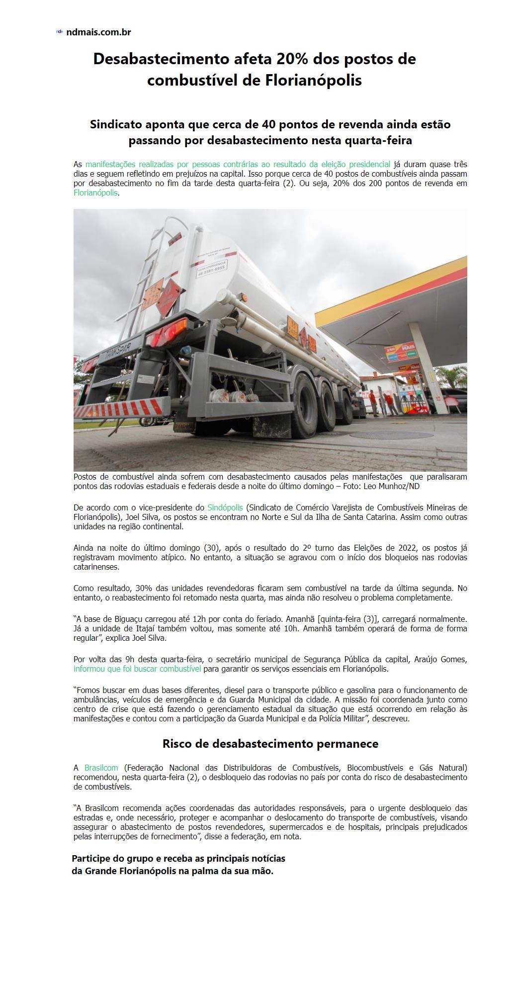 Desabastecimento afeta 20% dos postos de combustível de Florianópolis