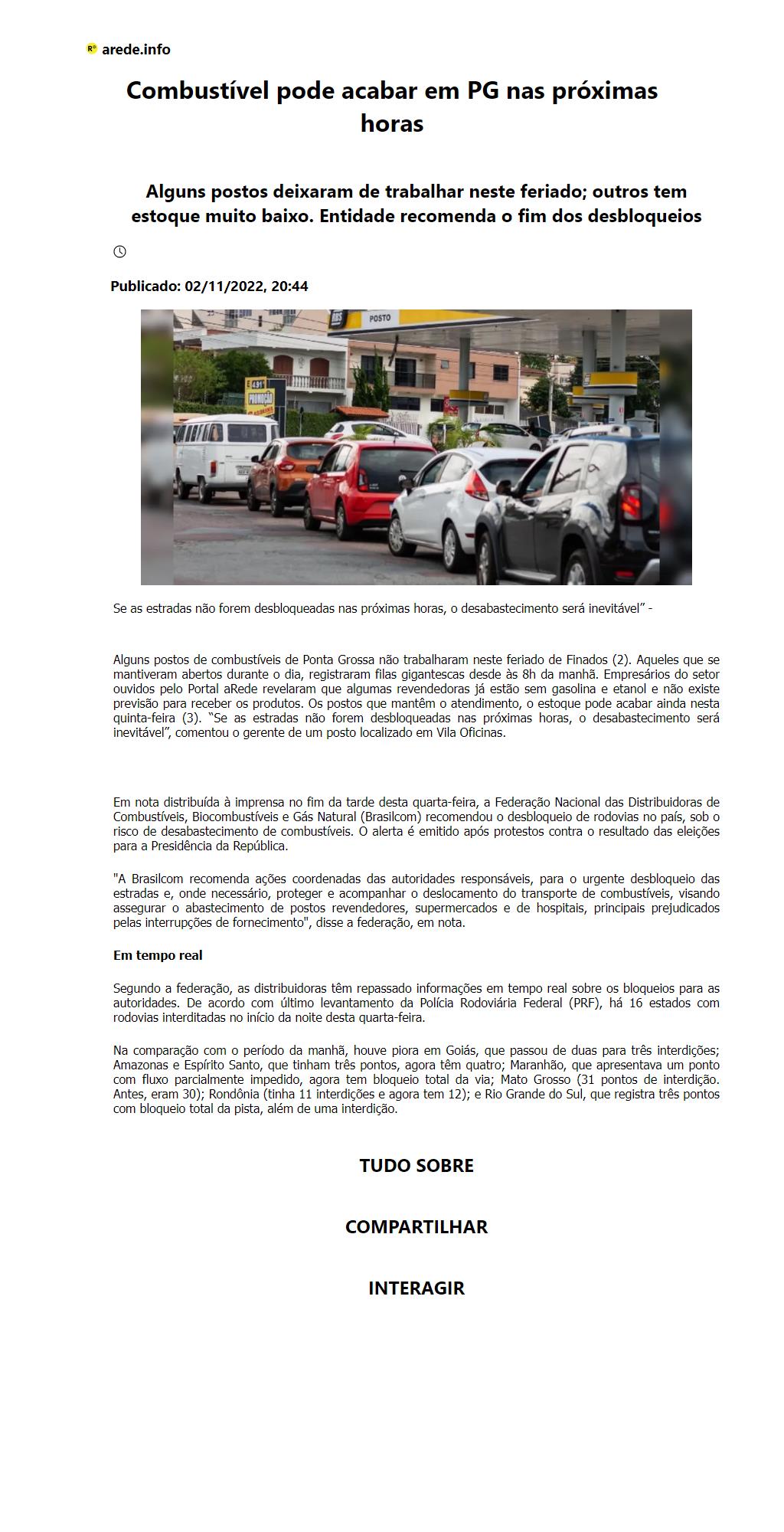 Combustível pode acabar em PG nas próximas horas