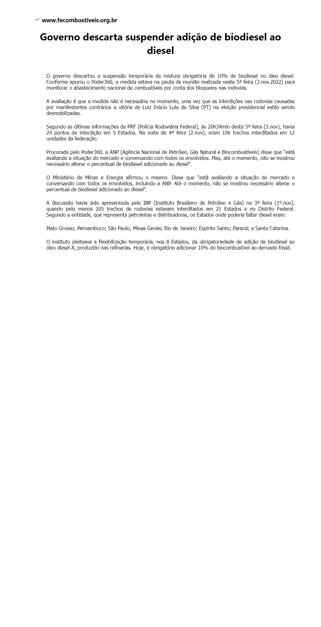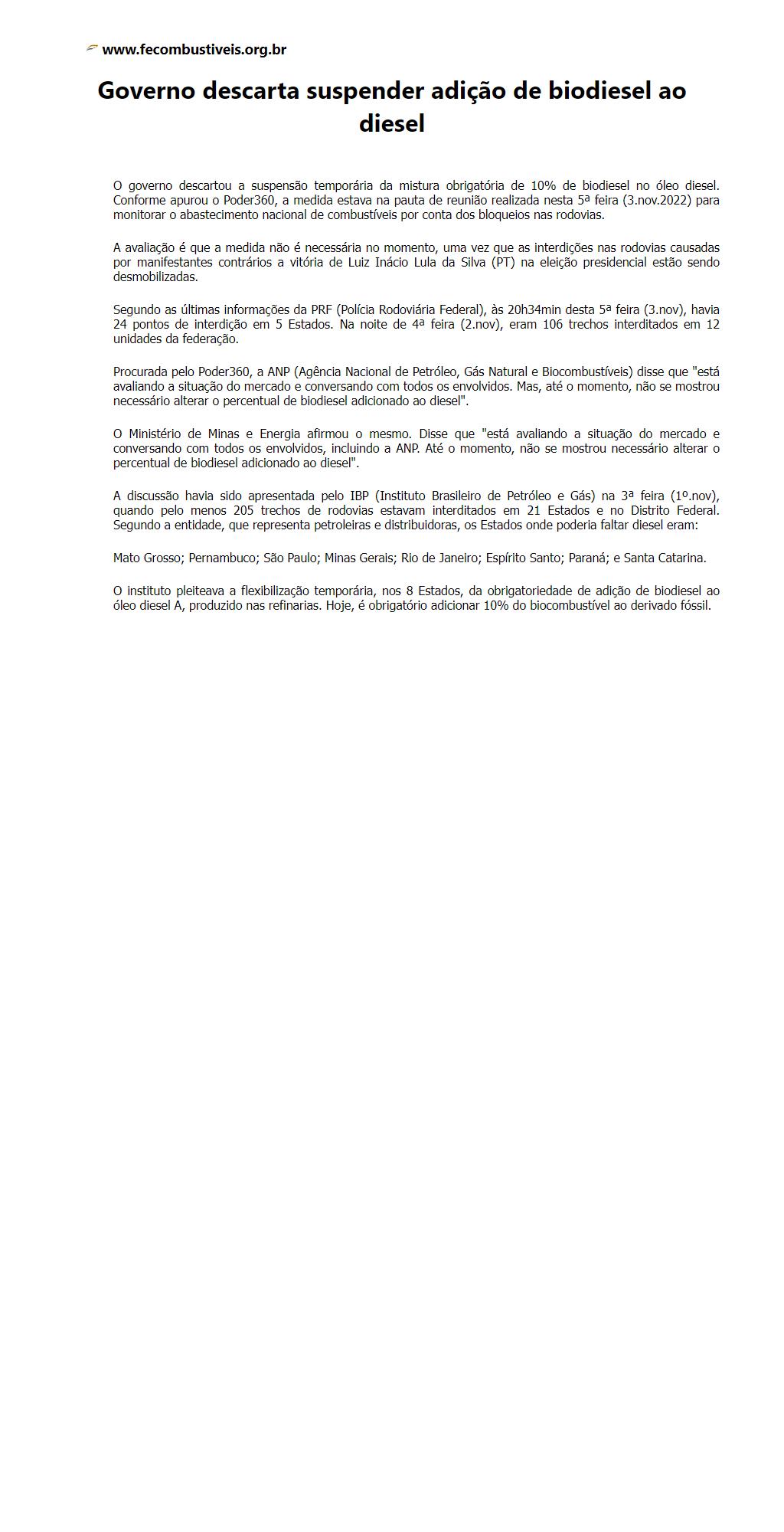 Governo descarta suspender adição de biodiesel ao diesel