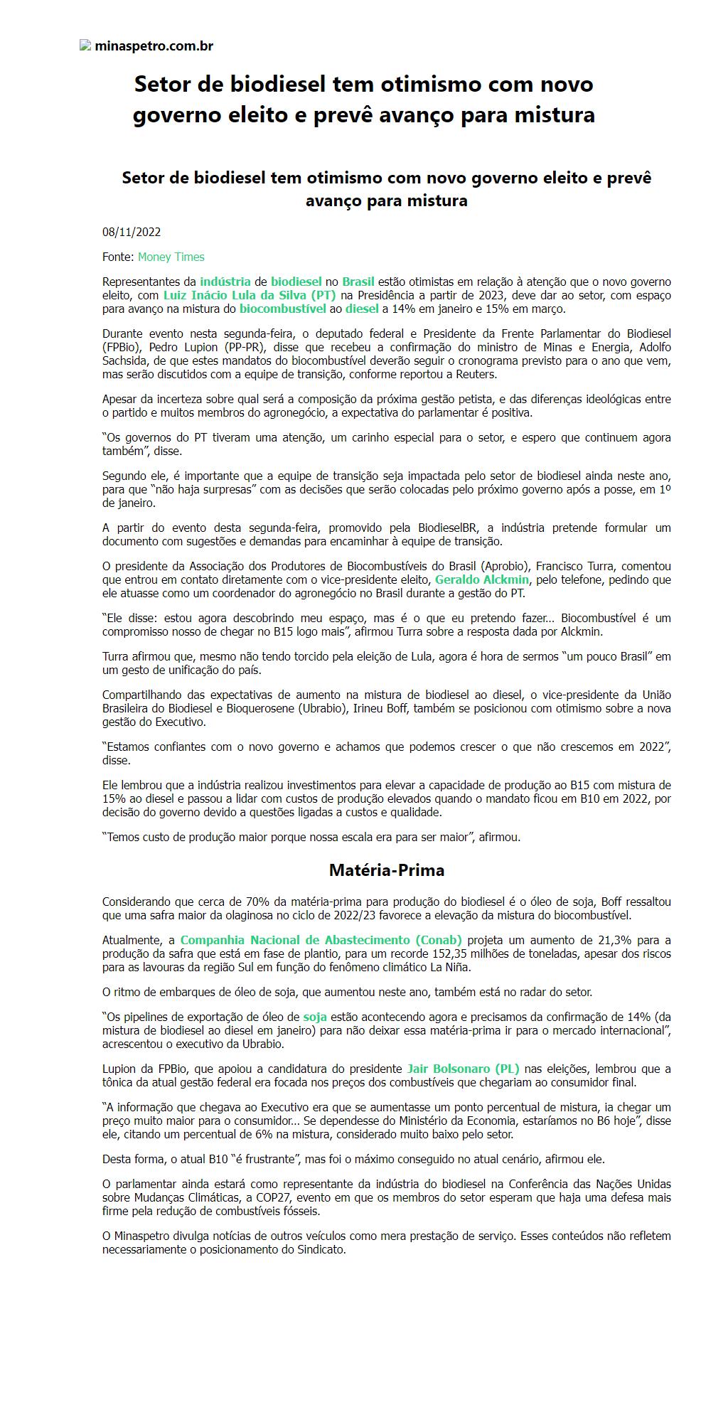 Setor de biodiesel tem otimismo com novo governo eleito e prevê avanço para mistura