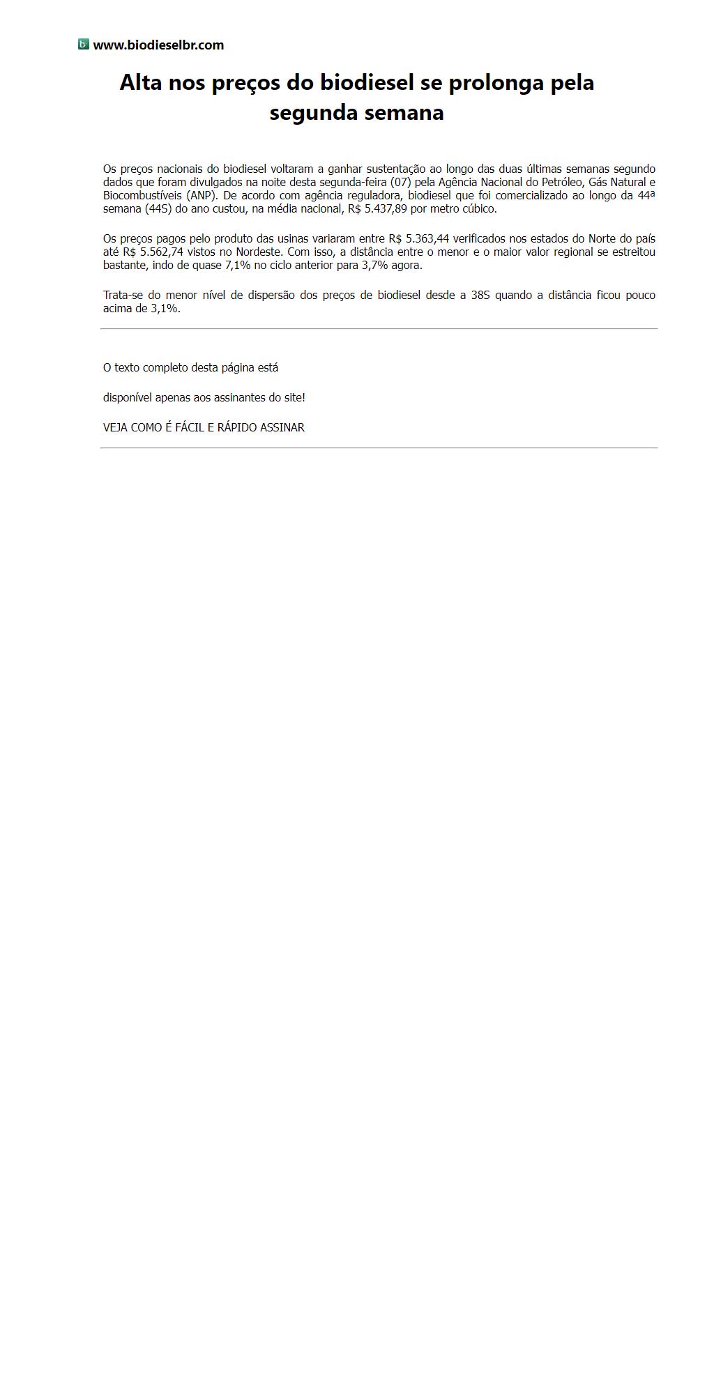 Alta nos preços do biodiesel se prolonga pela segunda semana