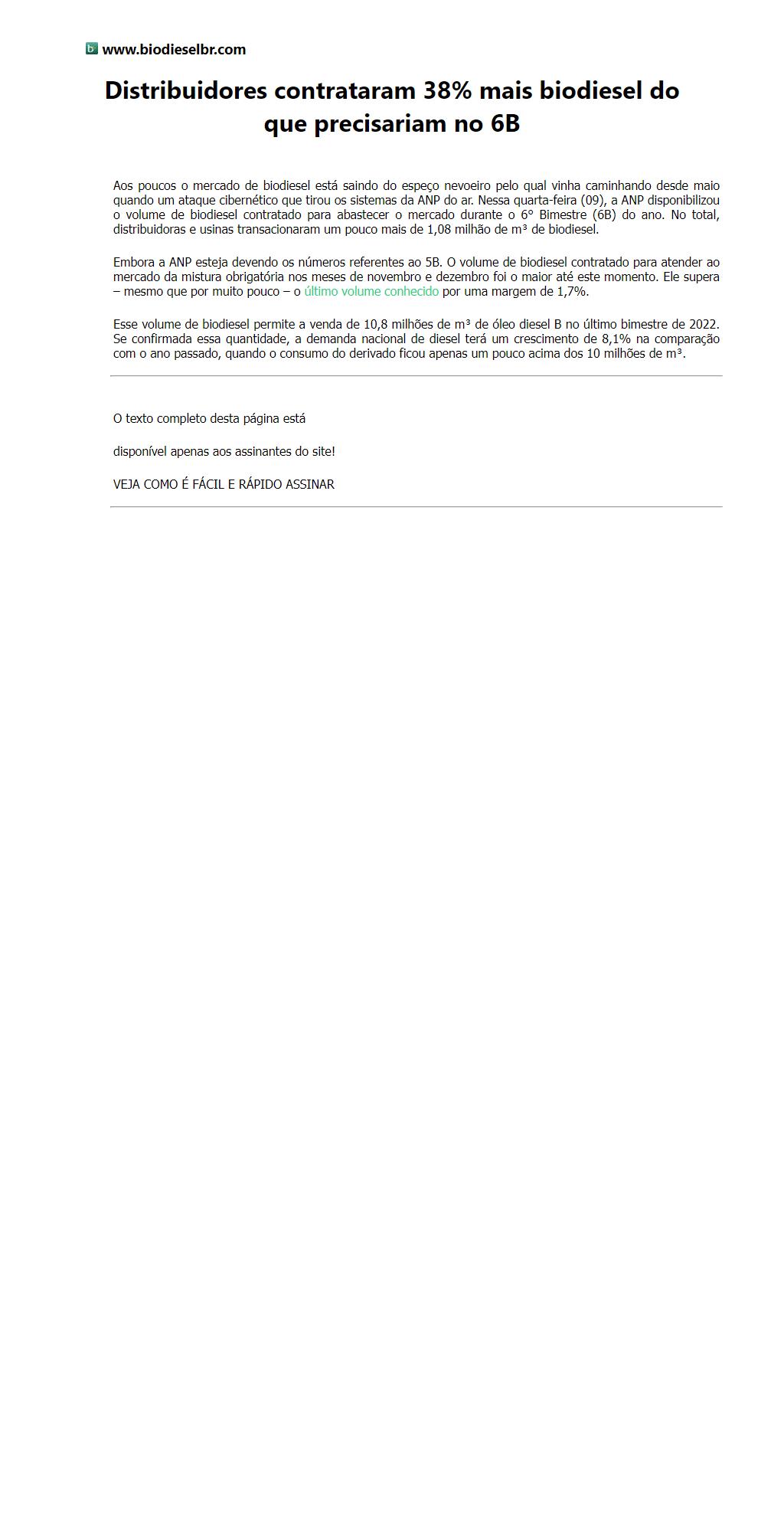 Distribuidores contrataram 38% mais biodiesel do que precisariam no 6B