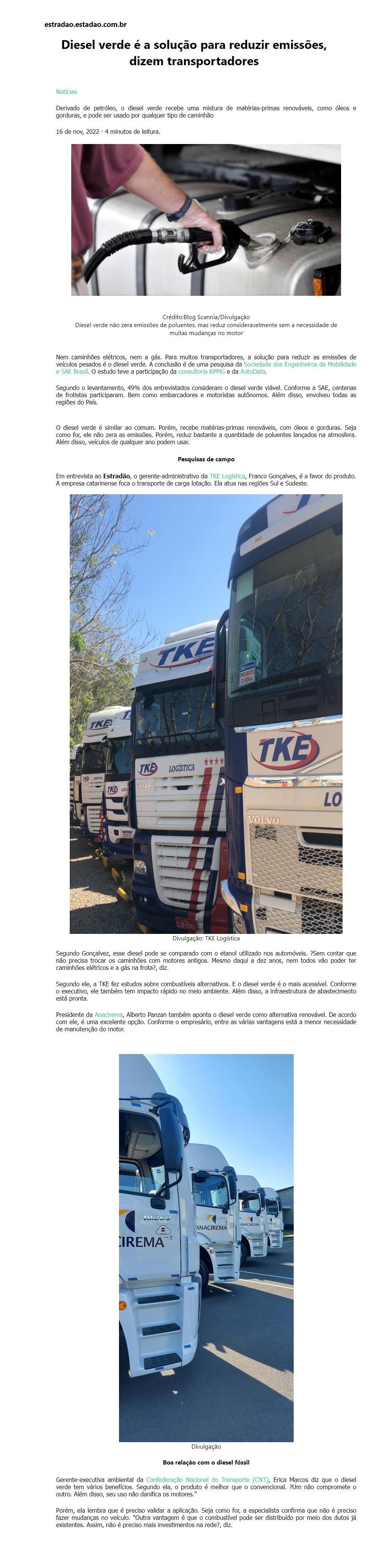Diesel verde é a solução para reduzir emissões, dizem transportadores