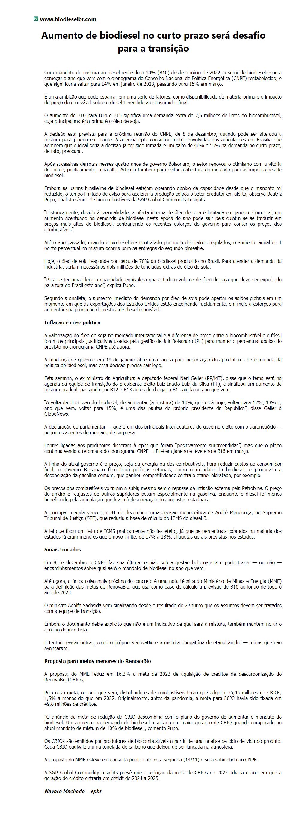 Aumento de biodiesel no curto prazo será desafio para a transição