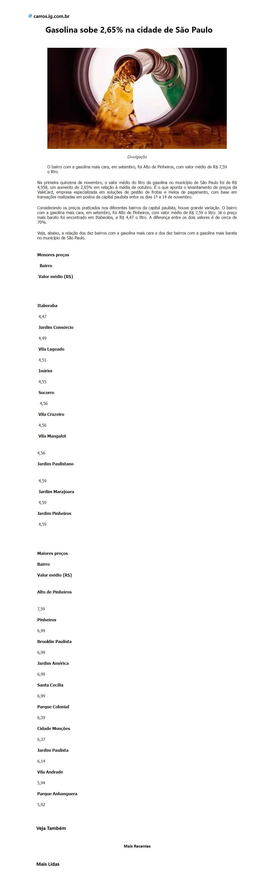 Gasolina sobe 2,65%na cidade de São Paulo