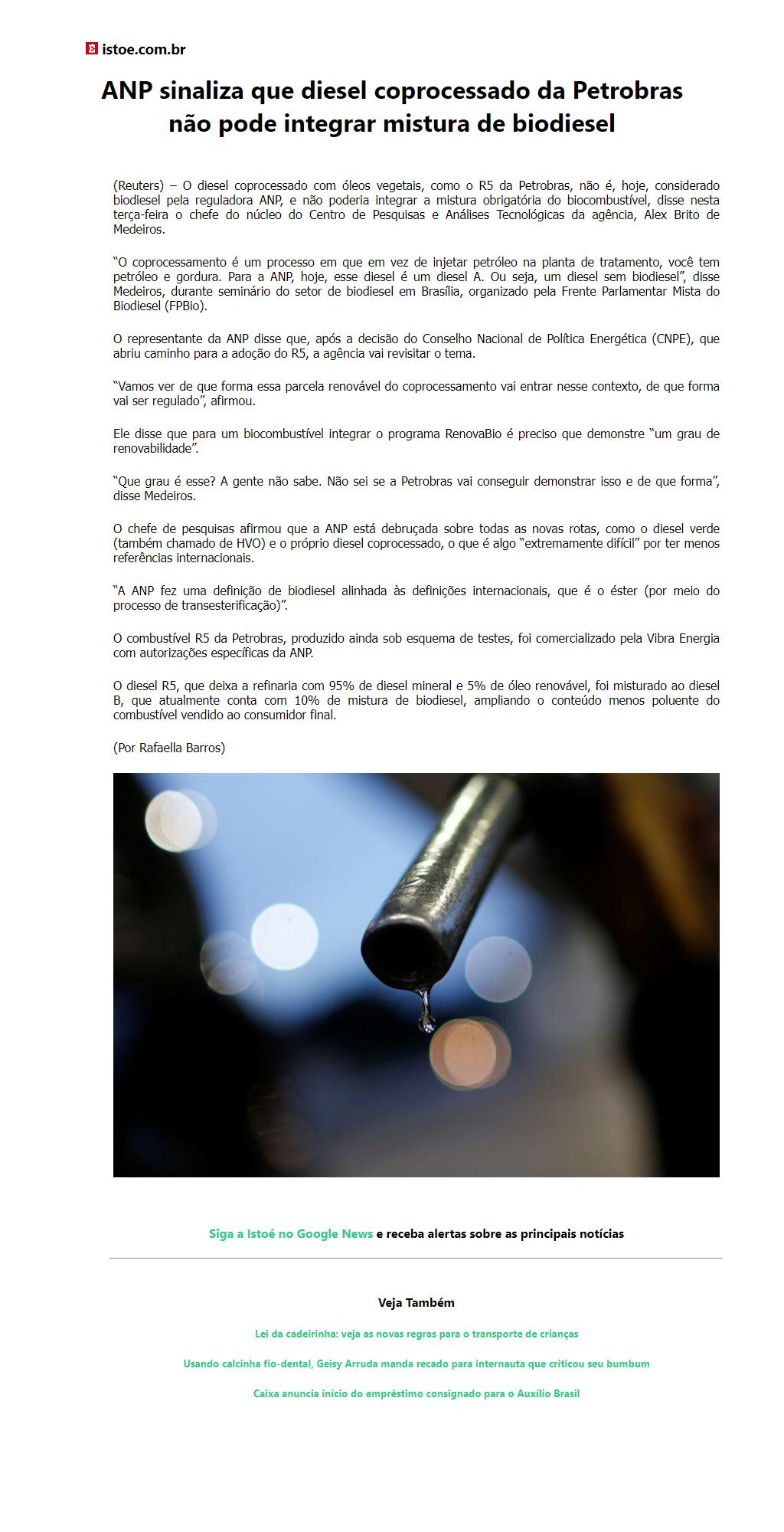 ANP sinaliza que diesel coprocessado da Petrobras não pode integrar mistura de biodiesel