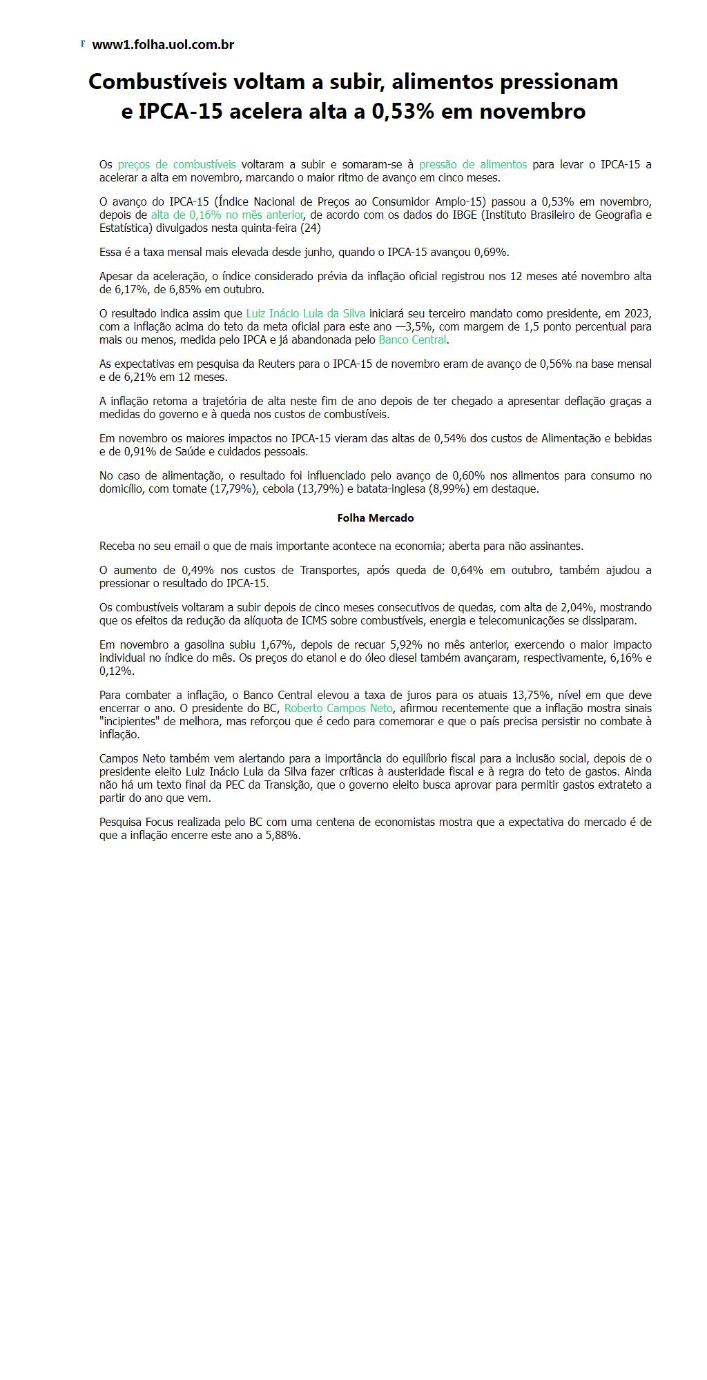 Combustíveis voltam a subir, alimentos pressionam e IPCA-15 acelera alta a 0,53% em novembro