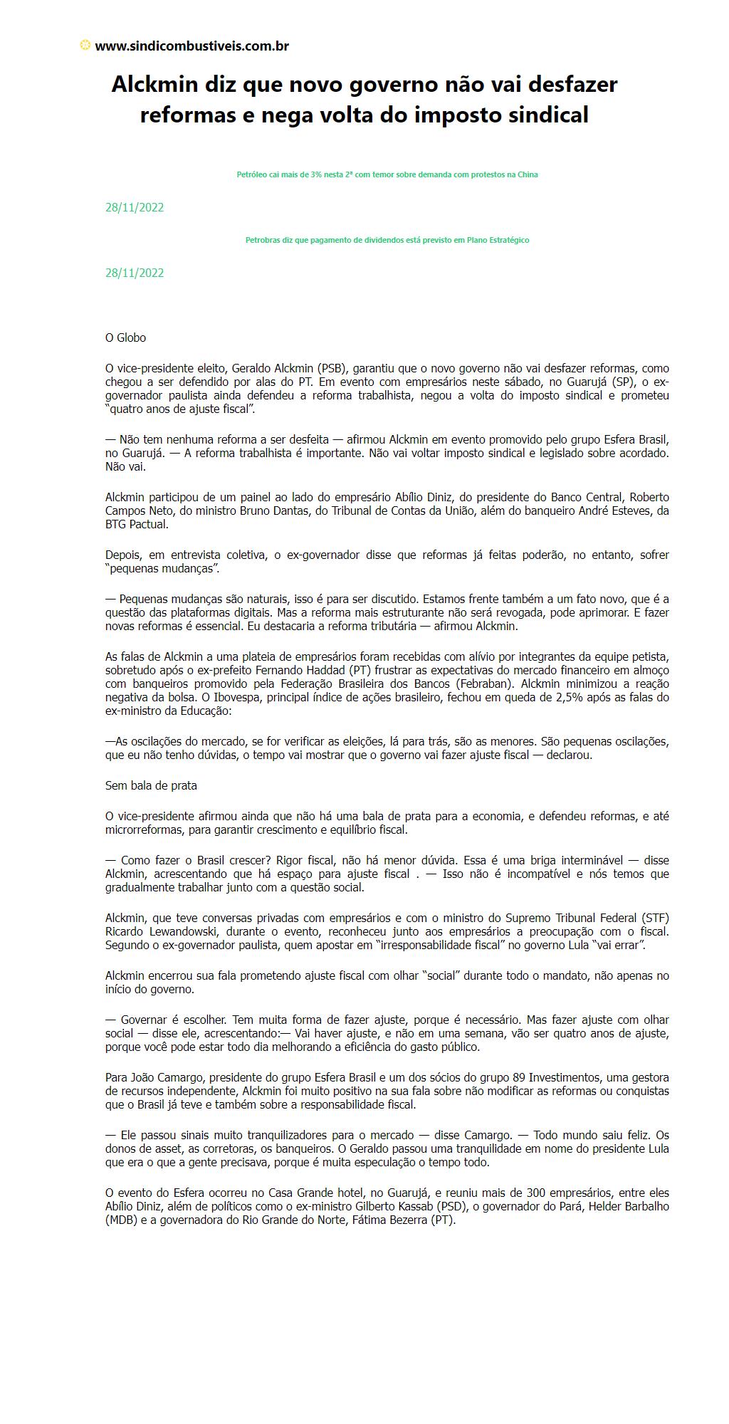 Alckmin diz que novo governo não vai desfazer reformas e nega volta do imposto sindical
