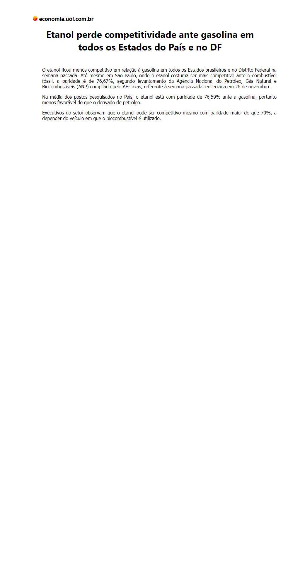Etanol perde competitividade ante gasolina em todos os Estados do País e no DF