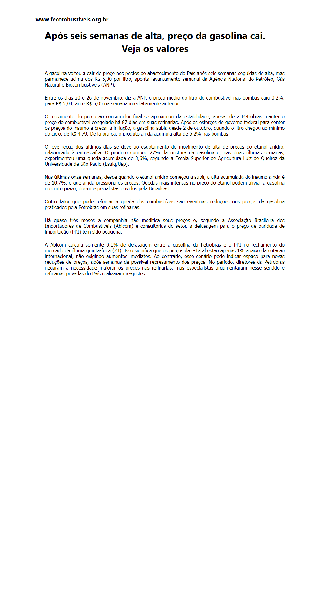 Após seis semanas de alta, preço da gasolina cai. Veja os valores